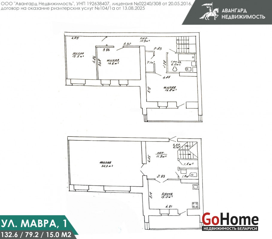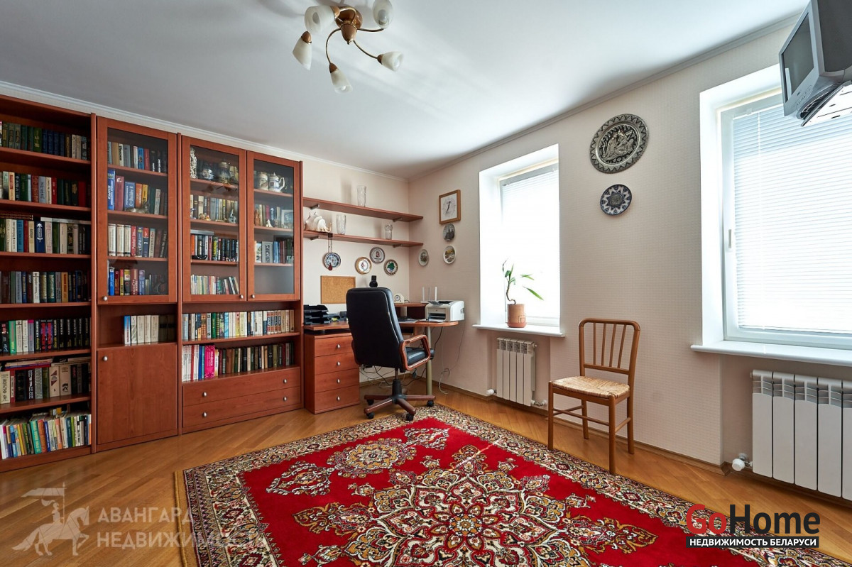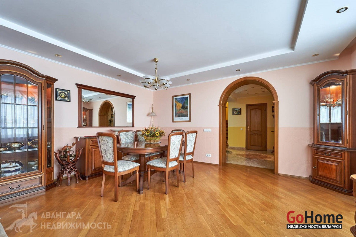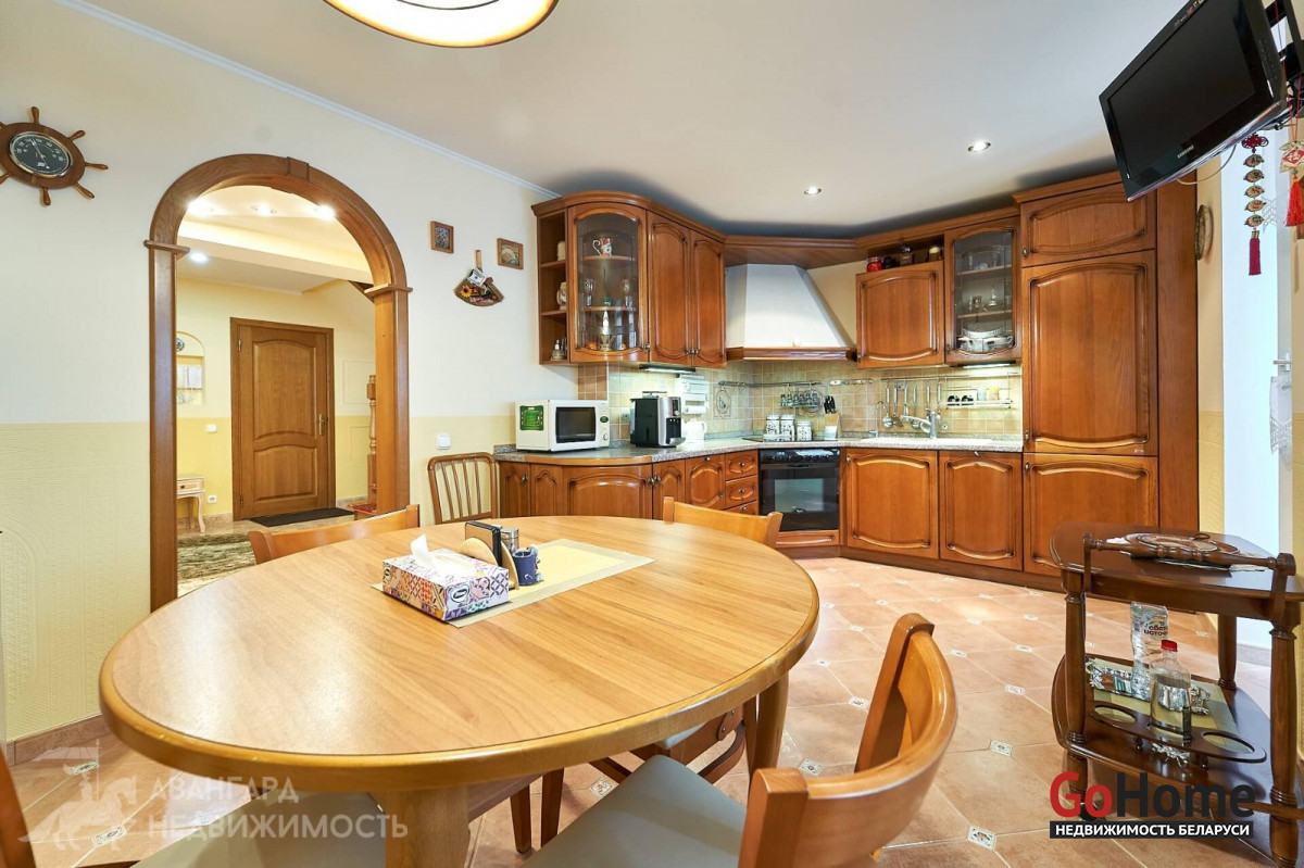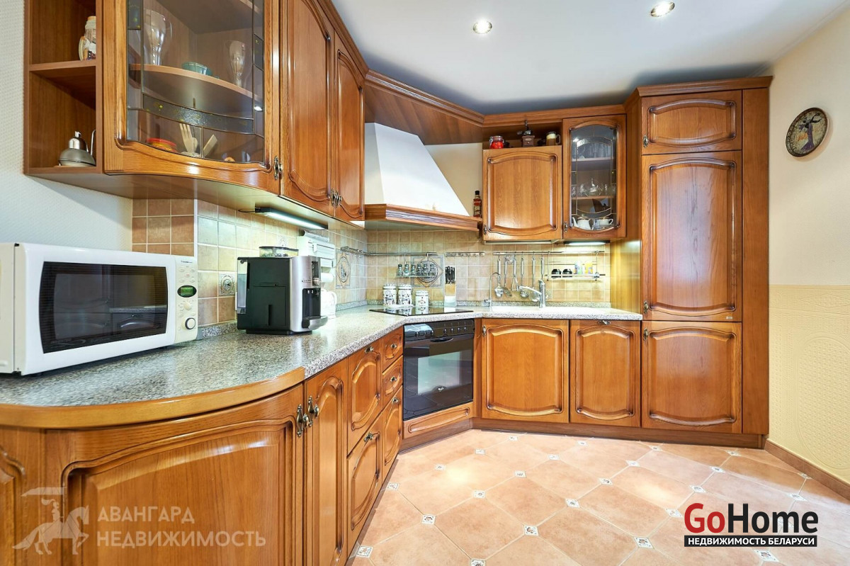 Квартира состоит из двух уровней, 4 больших комнат, отдельной кухни, кладовки и двух сан. узлов.