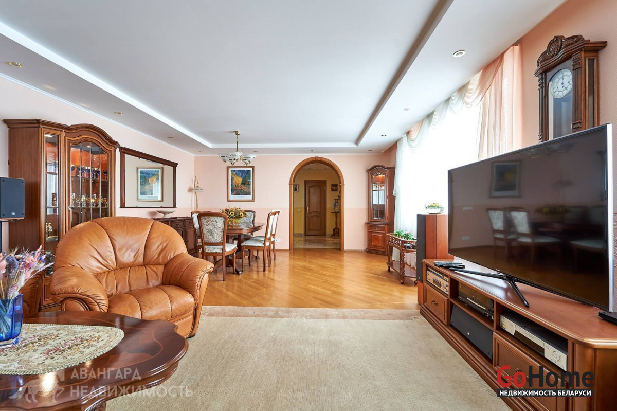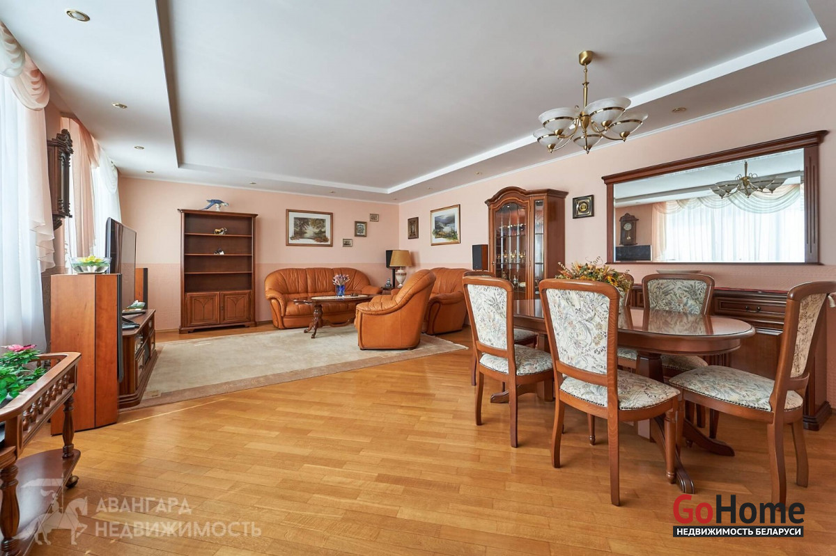 Просторная и стильная четырехкомнатная квартира расположена в тихом дворе с закрытой территорией.