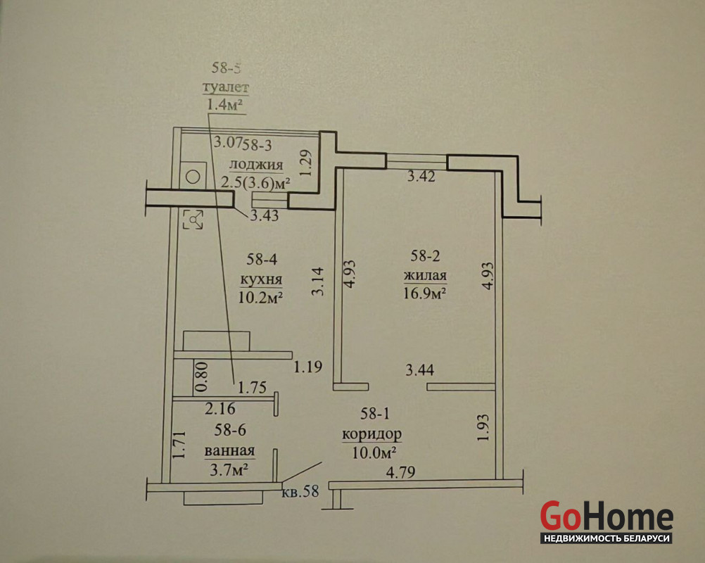 Площадь: 42,2 м² (СНБ — 44,7 м²) Этаж: 5/5