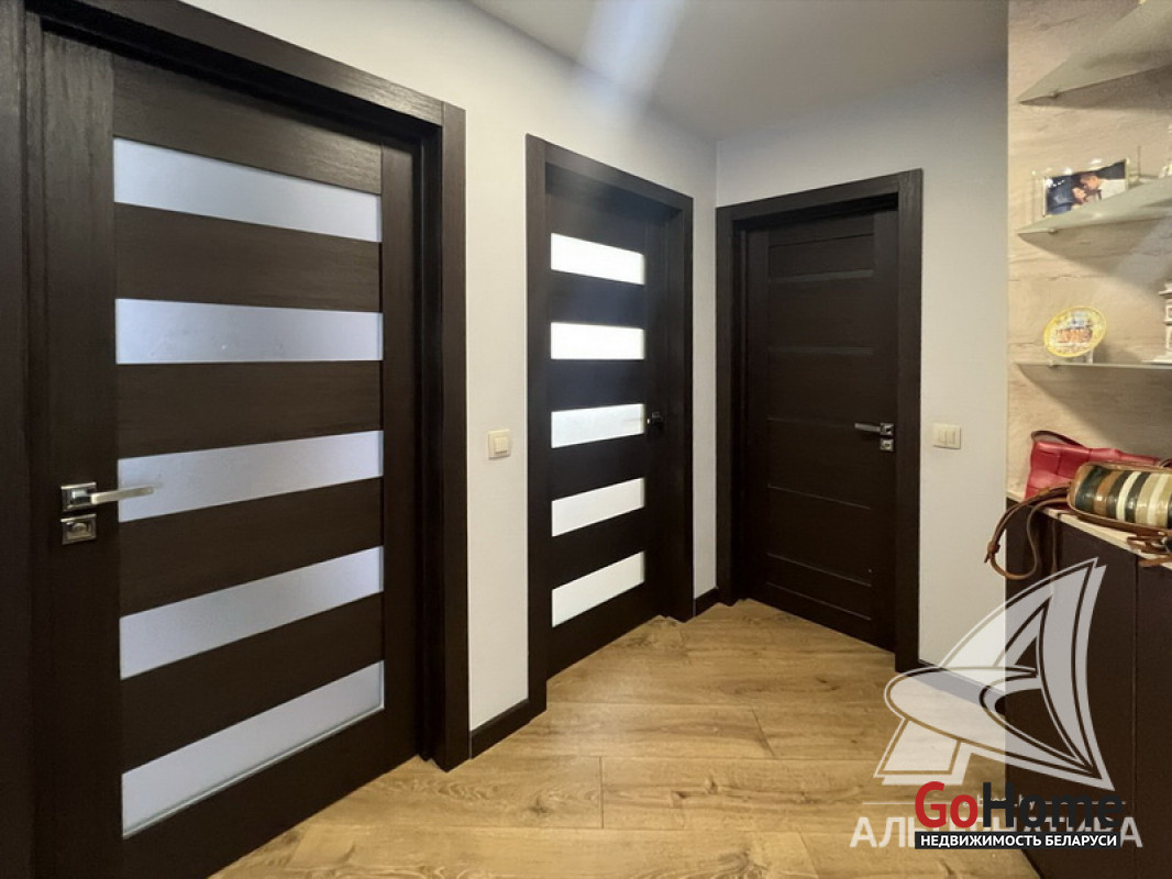 3-комнатная квартира, г. Брест, ул. Фомина, 2016 г.п., 11 / 16 каркас+блок, 80,8 / 78,1 / 43,2 / 11,8, санузел раздельный, балкон застеклен новыми стеклопакетами и утеплен, стеклопакеты, межкомнатные двери - МДФ, входная дверь металлическая, потолки - снежка, подвесные из гипсокартона, натяжные (сатин), с разноплановой системой освещения, полы - пробковый ламинат (Egger), плитка, есть подогрев пола (в зоне кухни), стены оклеены обоями под покраску, на стенах декоративная окраска, в санузле современная плитка, инсталляция, ванна, душевая кабина, установлен бойлер, установлены фильтры очистки воды, есть вывод под кондиционер, система видеонаблюдения в доме, домофон. Кухонный гарнитур, варочная поверхность, духовой шкаф, микроволновая печь, вытяжка, корпусная мебель в общей комнате, спальный гарнитур, шкаф, встроенная корпусная мебель в детской. Остальная мебель по договоренности. Квартира с хорошим ремонтом. Квартира расположена на две стороны. Чистый подъезд. На площадке первого этажа имеется закрытое место для колясок. Дом оборудован пандусом. Во дворе игровая детская площадка, парковка для автомобилей. Пассажирский и грузовой лифты. Лот - 251574
