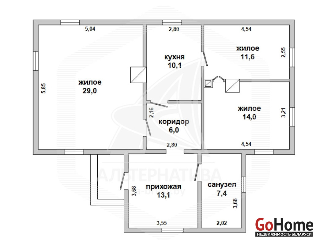 Жилой дом в Жабинковском р-не. 1957 г.п. 1 этаж. Общ.СНБ - 91,2 кв.м, общ.- 91,2 кв.м, жил.- 54,6 кв.м, кух.- 10,1 кв.м. 3 комнаты, высота потолка - 2,5 м.