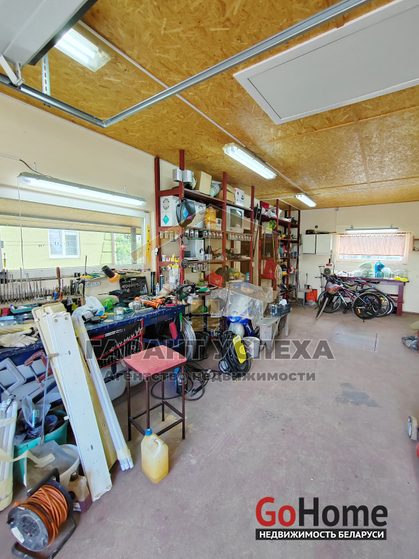 Помимо дома на территории имеются небольшая теплица и капитальный автомобильный гараж площадью почти 50 кв.м с большим навесом. В гараже подведено напряжение на 380 В, что является неоспоримым преимуществом для владельцев электрических машин. Также в гараже имеется погреб, предназначенный для хранения овощей и фруктов на зимний период.