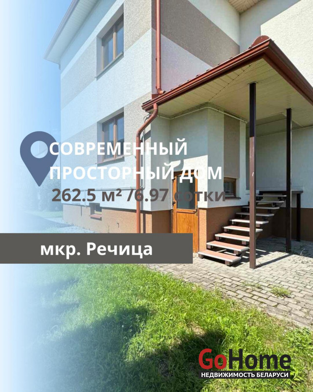 Подписывайтесь на наш instagram @ecrzby для удобного слежения за новыми актуальными объектами.Продаётся дом в г. Брест, мкр-н Речица — гармония уюта, стиля и продуманной функциональности.Общие характеристики- Построен в 1991 г., реконструирован в 2022 г. - Общая площадь по СНБ 262,5 м2, фактическая общая площадь 228,6 м2; жилая площадь 85,8 м2; просторная кухня 22,3 м2. - Участок 6,97 сотки, правильной формы, угловой, огорожен по периметру. Асфальтированные подъездные пути.Планировка и пространство:- 1 этаж: светлая и просторная кухня, уютная гостиная, санузел и холл с лестницей на 2 этаж. На первом этаже также предусмотрен тёплый пол для дополнительного комфорта. - 2 этаж: три изолированные комнаты, самая большая — 22,4 м2 с высоким потолком 3,63 м, совмещённый санузел. Планировка удобна для семьи — приватные спальни и общая зона на первом этаже.В цокольном этаже находятся гараж, топочная, а также дополнительные помещения.Стены — кирпичные, утеплённые и отделаны декоративной штукатуркой; перегородки из кирпича. Перекрытия — железобетонные плиты; крыша — металочерепица. Полы — ламинат и керамическая плитка; окна — деревянные стеклопакеты. Выполнен качественный современный ремонт, сочетающий практичность и стиль.Коммуникации и удобства- Все коммуникации центральные. - На участке — хозяйственная постройка и ухоженная территория с множеством декоративных растений.- Отличное местоположение в микрорайоне Речица: вся необходимая инфраструктура в шаговой доступности — магазины, школы, детские сады, транспортные маршруты.Просторный, тёплый и стильный дом с продуманной планировкой и ухоженным участком — готов к комфортной жизни всей семьи.