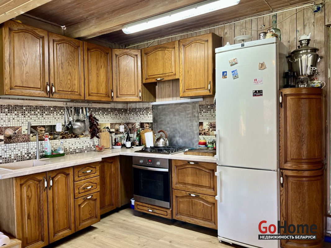 Дом бревенчататый, утепленный, обшитый блок-хаус. Внутри отделка деревом, вся мебель натуральная дубовая, дом ухоженный, есть комната отдыха, мастерская, погреб, теплицы, плодовые деревья, ровный газон, металлический забор.
