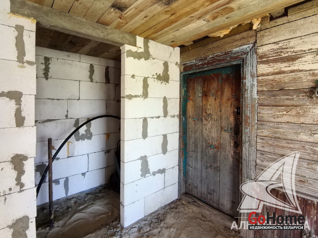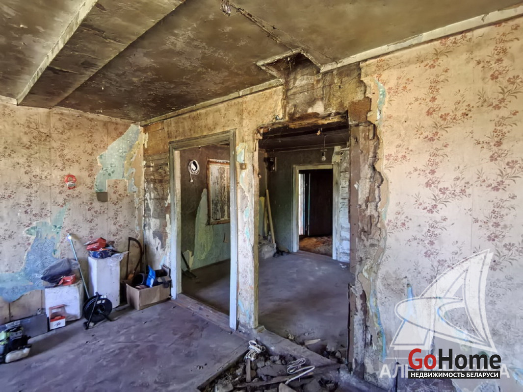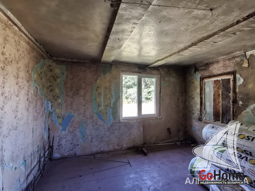 Жилой дом на стадии реконструкции в г. Жабинке. Реконструкция 2025 г. 1 этаж. Общ.СНБ - 46,4 кв.м, общ.- 46,4 кв.м, жил.- 34,1 кв.м, кух.- 6,7 кв.м. 3 комнаты, высота потолка - 2,5 м.