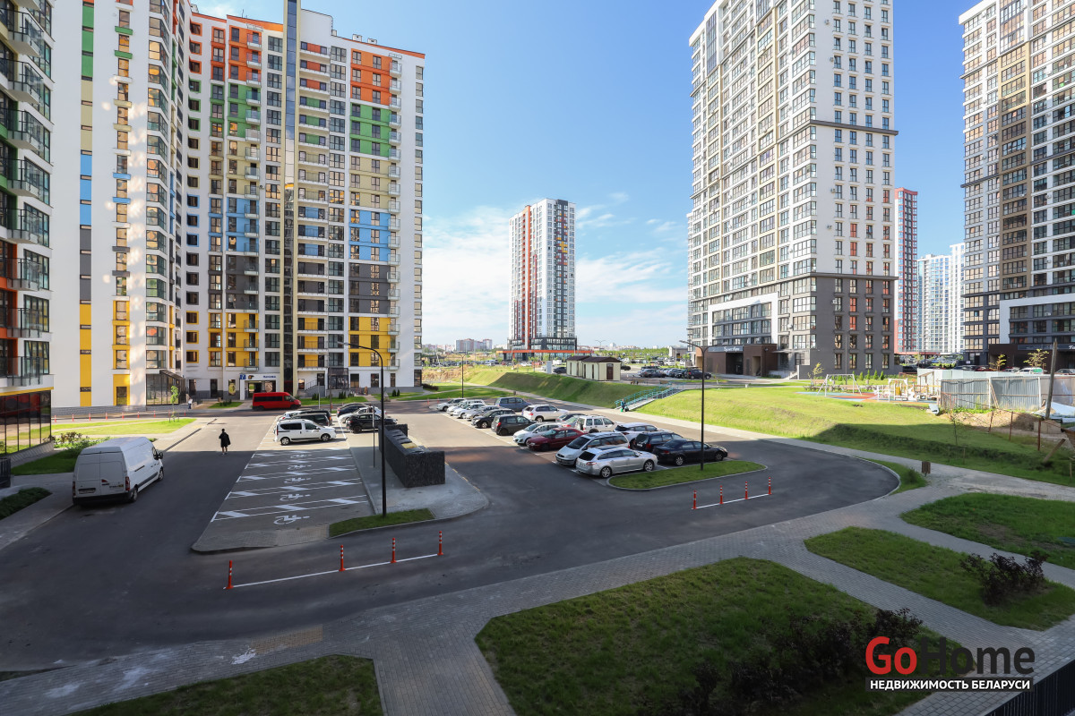 Апартаменты расположены недалеко от центра города в микрорайоне MinskWorld (ул. Леонида Щемелева, 14. Дом "Мехико Сити").