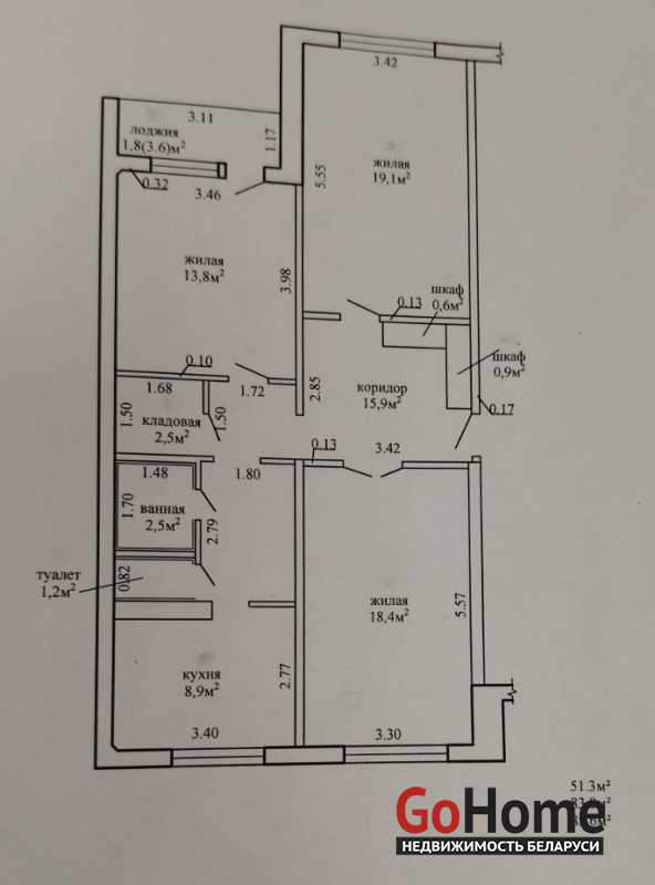 Жилая площадь: 51,3 м2