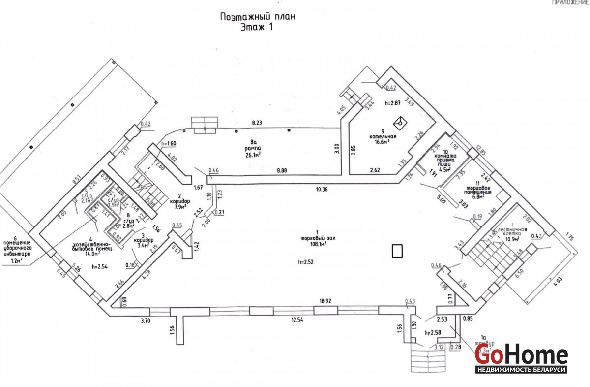 Помещение с ремонтом, отапливаемое. Состоит из торгового зала 159,5 м2, хозяйственно-бытовых помещений, санузла.