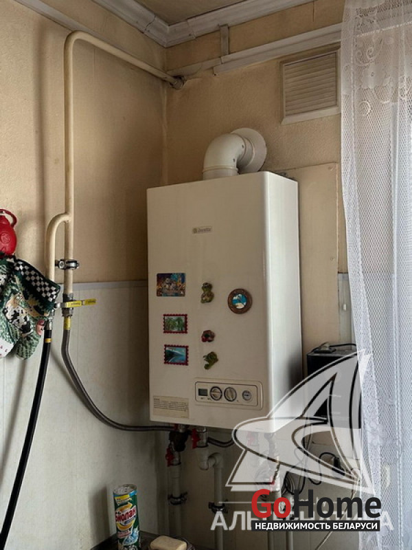 Коммуникации: отопление - газовый котел, газ - централизованный (в доме), водоснабжение - централизованный водопровод, электричество - централизованное, канализация - централизованная.