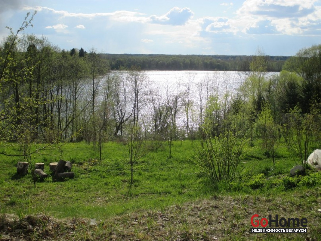 Участок ровный, есть плодовые деревья и кусты. На участке есть дом (требует капитального ремонта или под снос), а также хоз.постройки и гараж. С участка открывается вид на озеро (там идёт склон и строиться перед домой ничего не будет). На участке есть электричество. Соседи хорошие, в основном дачи людей из Минска.