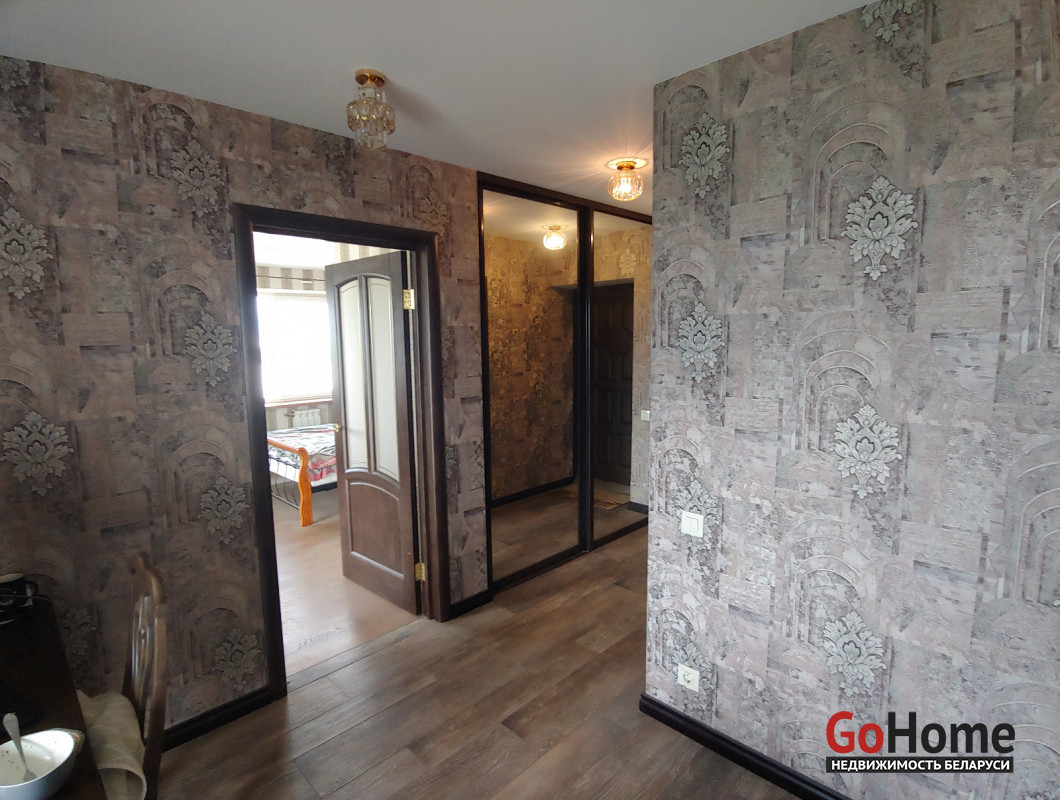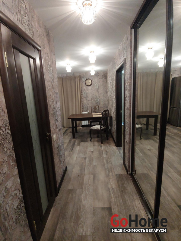 Эксклюзивная квартира 47 м.кв в городе Витебске с качественным дизайнерским ремонтом. Имеется солидный встроенный шкаф, кровать, стиральная машина LG, холодильник LG, эл. стекрокерамическая варочная панель на две конфорки, вытяжка, кондиционер Electrolux с функцией подогрева, кухонный стол, стулья, кухонный гарнитур (столешница из массива дерева), шторы. Подоконники и плинтуса из массива дуба. На полу в комнате паркетная доска. В коридоре, санузле и на кухне испанская рельефная плитка под старое дерево. Фильтр очистки технической и питьевой воды. Душевая кабина с пьедесталом из плитки. Выход на лоджию из комнаты и из кухни. Стены и потолок выровнены по маякам гипсовой штукатуркой, двери из массива, трубы отопления убраны в ниши, современные надёжные радиаторы отопления, качественная входная дверь с хорошей звукоизоляцией, вызывная панель с функцией интернет просмотра и управления. Лоджия 5 метров. Быстрому покупателю лучшие условия, возможна рассрочка платежа от собственника.