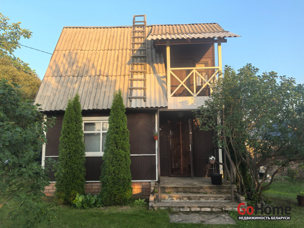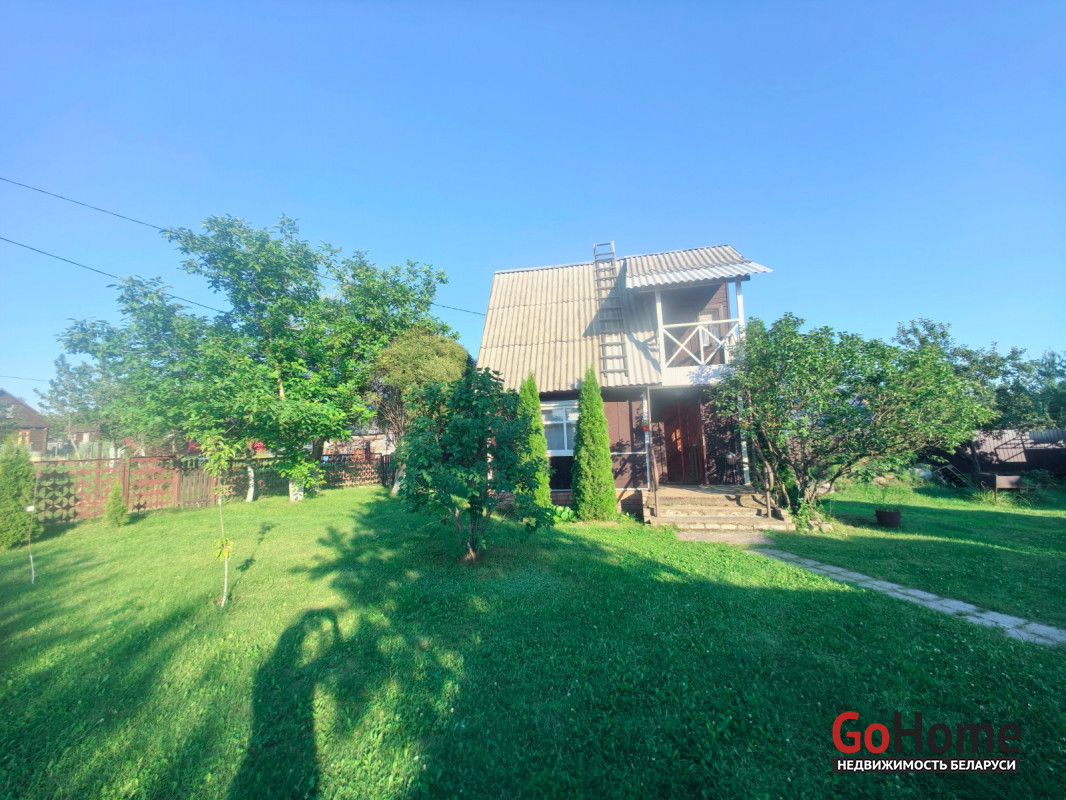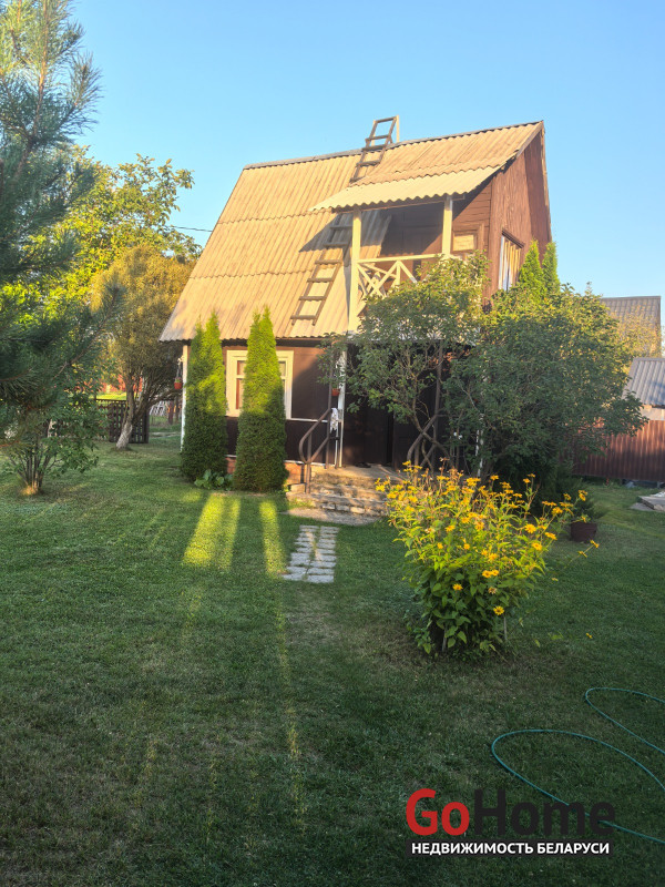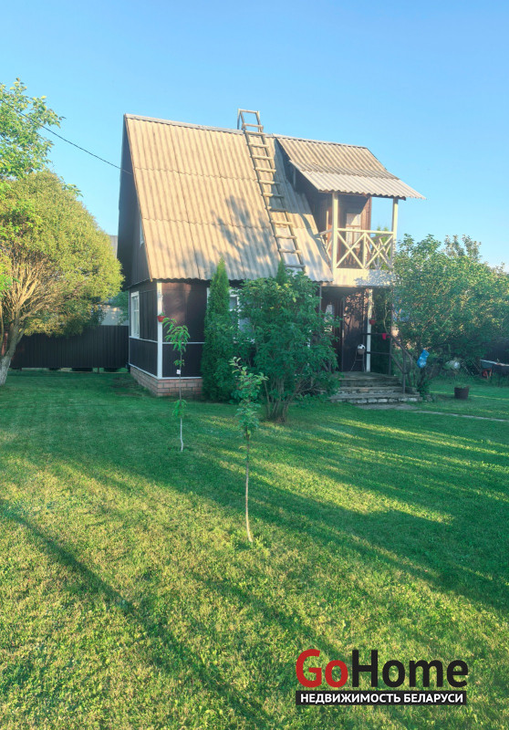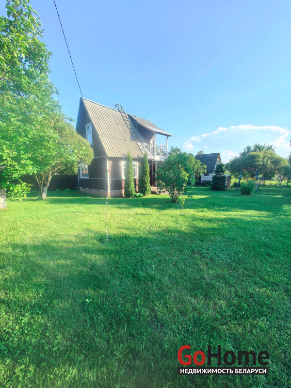 Продается двухэтажный дом (сруб, обшит вагонкой) в СТ "Торфяник-2008", 42 км от МКАД, Могилевское направление. Асфальтированная дорога почти до самого дома, в 10 минутах ходьбы река Птичь, с оборудованным пляжем и воллейбольной площадкой, в 9 км Сергеевичское озеро., рядом ягодно-грибной лес. Дом 2015 года постройки, общая площадь 48 кв. м, жилая 34 кв., есть кухня, 2 комнаты, веранда. Первый этаж: жилая комната, кухня, оборудованная шкафчиками, столешницeй Egger, мойкой, имеется холодная и горячая вода. Второй этаж: спальня, веранда, также имеется балкон с навесом. Внутренняя отделка – вагонка, пол – доска пола. Домик продается с мебелью (огромная кровать, два дивана, кресло, пристенная скамья, стол-книга, журнальный стол, большой шкаф, кухонные шкафчики и др.) и бытовой техникой (большой холодильник Атлант, пылесос Самсунг, микроволновка, триммер, генератор, газонокосилка, газовая плитка, акустическая система. На участке своя скважина с насосом и фильтром для воды, есть хоз. постройки, к которым также подведено электричество (кирпичный сарай со стеллажами, помещение для хранения инструментов), туалет, летний душ, огромная беседка с крышей из металлопрофиля, новые лежаки, чтобы загорать. Земельный участок 6.5 соток находится в частной собственности, ухоженный, ровный, прямоугольной формы, огорожен со всех сторон забором: из сетки – рабицы с двух сторон, с двух сторон забор металлический. На участке высажены молодые плодово-ягодные деревья и кустарники ( яблони, черешня, вишня, малина , голубика, смородина, алыча, слива, виноград). Круглогодично с остановки, до которой 10-15 мин. пешком, курсируют автобусы и маршрутные такси до станции метро «Могилевская» и "Автозаводская" г.Минска.