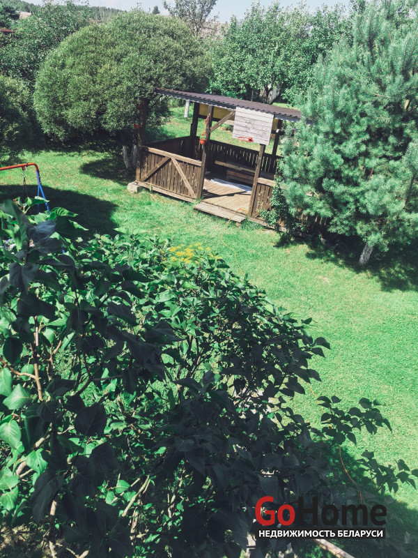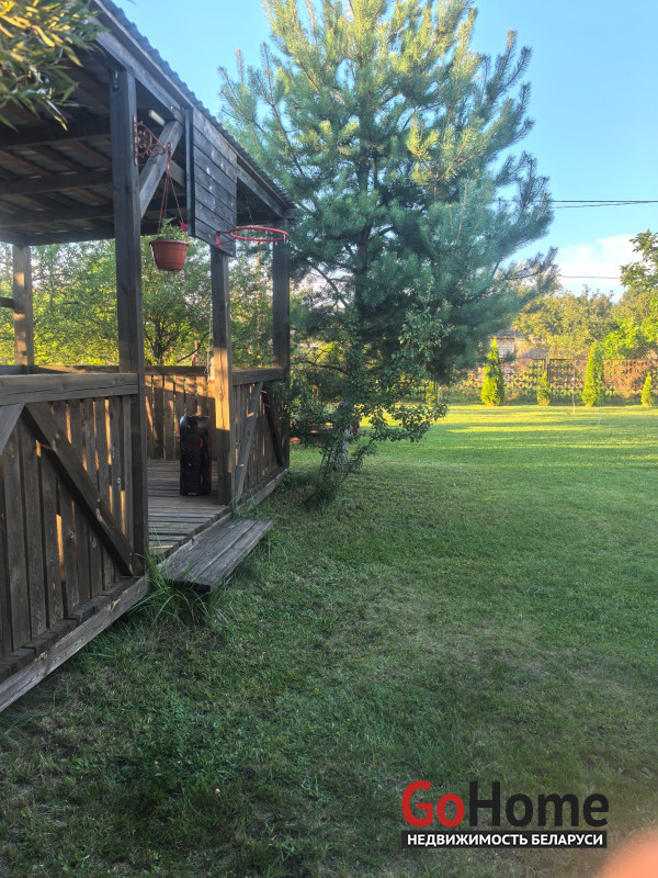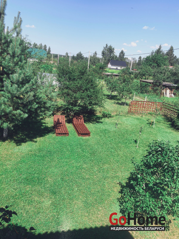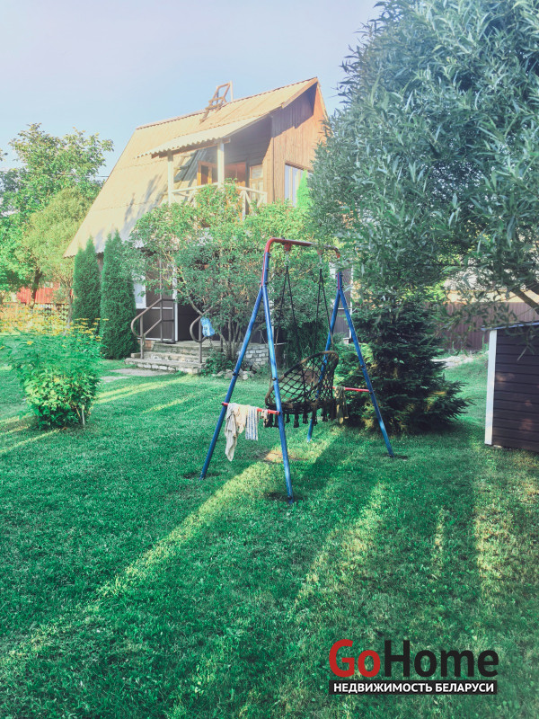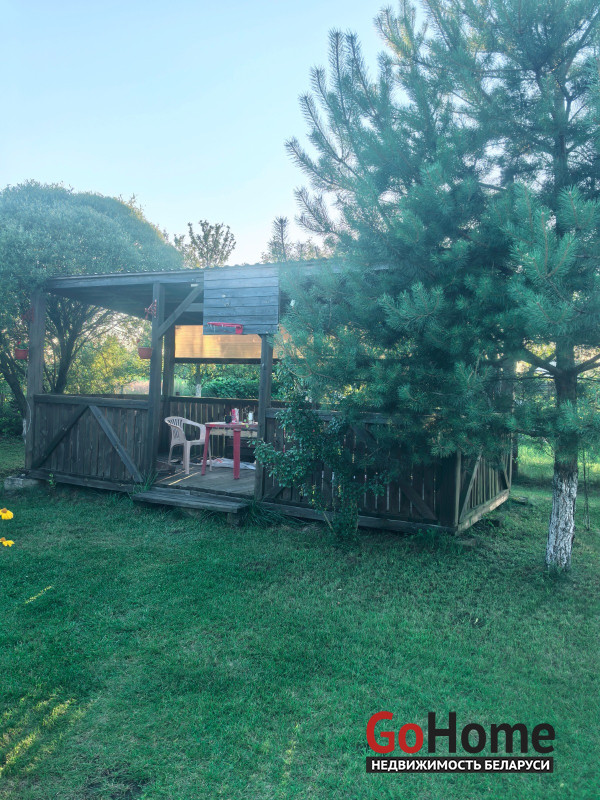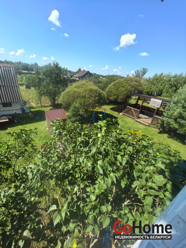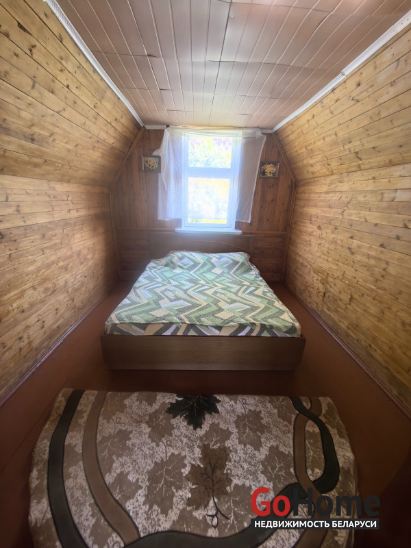 Продается двухэтажный дом (сруб, обшит вагонкой) в СТ "Торфяник-2008", 42 км от МКАД, Могилевское направление. Асфальтированная дорога почти до самого дома, в 10 минутах ходьбы река Птичь, с оборудованным пляжем и воллейбольной площадкой, в 9 км Сергеевичское озеро., рядом ягодно-грибной лес. Дом 2015 года постройки, общая площадь 48 кв. м, жилая 34 кв., есть кухня, 2 комнаты, веранда. Первый этаж: жилая комната, кухня, оборудованная шкафчиками, столешницeй Egger, мойкой, имеется холодная и горячая вода. Второй этаж: спальня, веранда, также имеется балкон с навесом. Внутренняя отделка – вагонка, пол – доска пола. Домик продается с мебелью (огромная кровать, два дивана, кресло, пристенная скамья, стол-книга, журнальный стол, большой шкаф, кухонные шкафчики и др.) и бытовой техникой (большой холодильник Атлант, пылесос Самсунг, микроволновка, триммер, генератор, газонокосилка, газовая плитка, акустическая система. На участке своя скважина с насосом и фильтром для воды, есть хоз. постройки, к которым также подведено электричество (кирпичный сарай со стеллажами, помещение для хранения инструментов), туалет, летний душ, огромная беседка с крышей из металлопрофиля, новые лежаки, чтобы загорать. Земельный участок 6.5 соток находится в частной собственности, ухоженный, ровный, прямоугольной формы, огорожен со всех сторон забором: из сетки – рабицы с двух сторон, с двух сторон забор металлический. На участке высажены молодые плодово-ягодные деревья и кустарники ( яблони, черешня, вишня, малина , голубика, смородина, алыча, слива, виноград). Круглогодично с остановки, до которой 10-15 мин. пешком, курсируют автобусы и маршрутные такси до станции метро «Могилевская» и "Автозаводская" г.Минска.