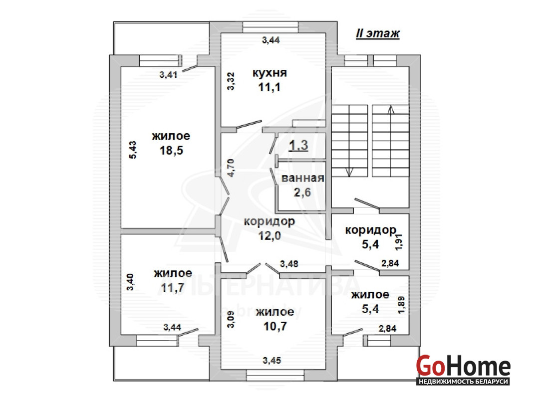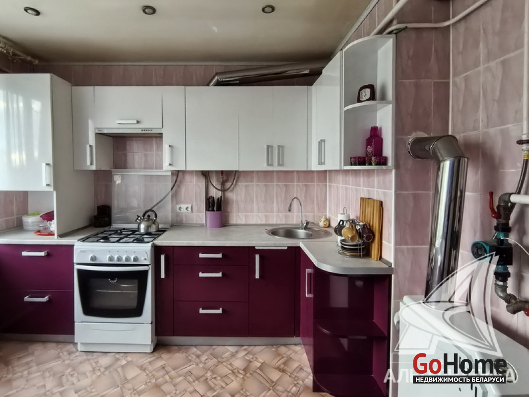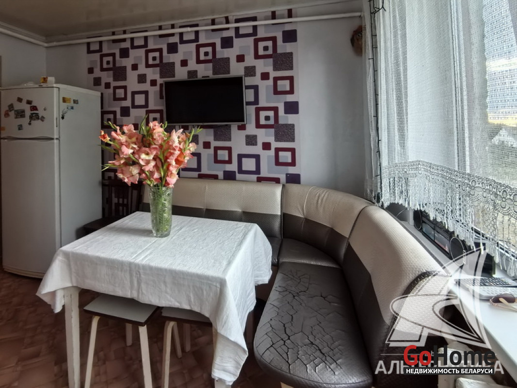 Квартира в блокированном жилом доме в Кобринском р-не. 1986 г.п. 2 этажа. Общ.СНБ - 147,3 кв.м, общ.- 80,2 кв.м, жил.- 46,3 кв.м, кух.- 11,1 кв.м. 4 комнаты, высота потолка - 2,70 м.