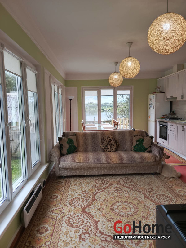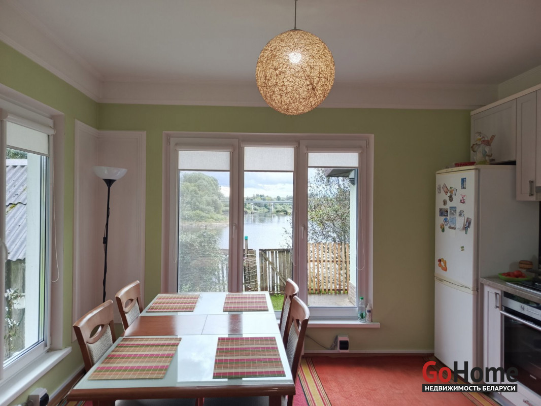 Загородный дом на 1-й береговой линии с прямым выходом к реке. Дом 2016 года постройки с готовностью 100 %. Два уровня: на первом - прихожая с погребом, 2 комнаты, большая кухня-гостиная с каминной зоной, санузел; на втором - гардеробная, 2 большие мансардные комнаты с видом на Западную Двину. Во всём доме высокие потолки, полы из натурального дерева, панорамные окна с большим количеством солнечного света. На участке как отдельное строение располагается летняя кухня, также имеется гараж с возможностью заезда грузовой машины. В доме центральное водоснабжение (горячая вода - бойлер), электроотопление, а также имеется современная печь и камин. Хороший подъезд к дому. Регулярное автобусное сообщение. Удалённость от Витебска - 45 км. Живописное место с красивым видом круглый год! Звоните и пишите (Viber, WhatsApp, Telegram) - вышлем дополнительные фото и видео!