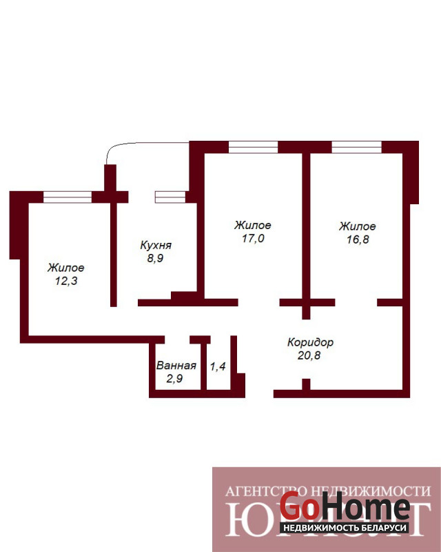 • Комнаты: 17 м² + 17 м² + 12,3 м²