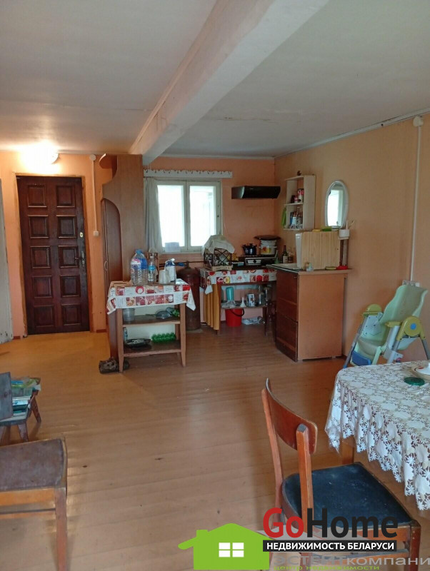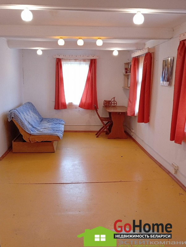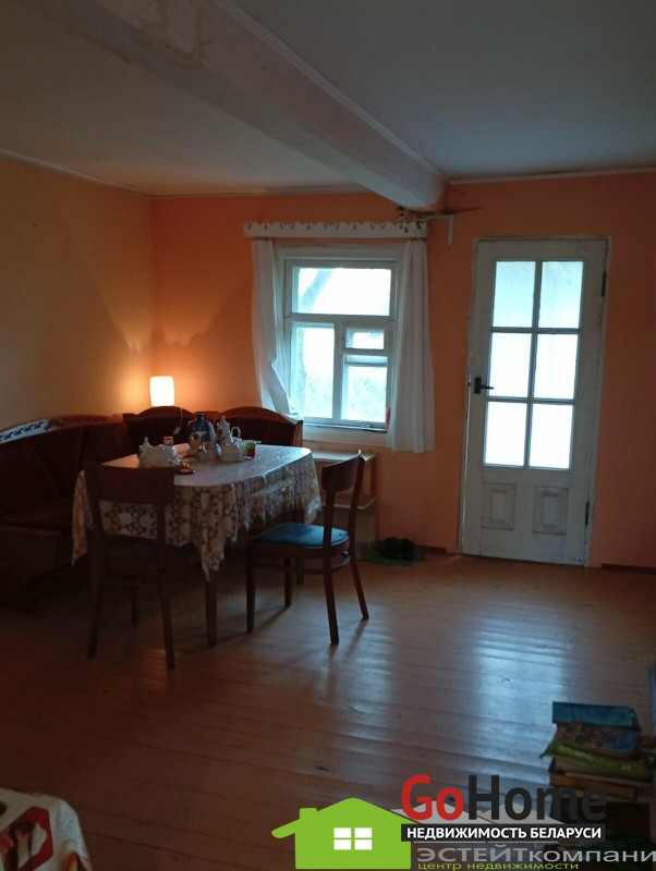 В продаже деревянный одноэтажный жилой дом с двумя комнатами в а.г.Деревная, недалеко от Слонима. Общая площадь дома-59,1м2, жилая-32.9м2, кухня- 10,6м2. Стены- бревно в отличном состоянии, кровля- шифер, окна с деревянными рамами. Полы доска, межкомнатные и входные двери деревянные. К дому подведено электричество, отопление- новая русская печь с лежанкой , газ по улице, водоснабжение- водопровод. Дополнительно есть два сарая, навес под машину и дровяной сарай. Участок площадью 25соток вытянутой формы с озеленением на территории. Подъезд- асфальт. А.г. с развитой инфраструктурой. Хозяин дома- знаменитый художник.