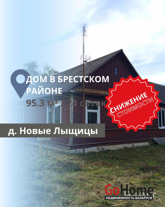 Подписывайтесь на наш instagram @ecrzby для удобного слежения за новыми актуальными объектами.Продается деревянный дом в северном направлении Брестского района, в деревне Новые Лыщицы. Построенный в 1968 году, дом имеет общую площадь 95,3 м2, из которых жилая площадь составляет 59,4 м2, а кухня — 13,6 м2. Стены дома выполнены из дерева, пристройка облицована кирпичом, кровля — шиферная. Коммуникации включают электричество, печное отопление и газ. Водоснабжение осуществляется от колодца и скважины с гидрофором, канализация — местная. На участке площадью 24 сотки расположен сарай, что создает дополнительные возможности для хранения и работы на участке.