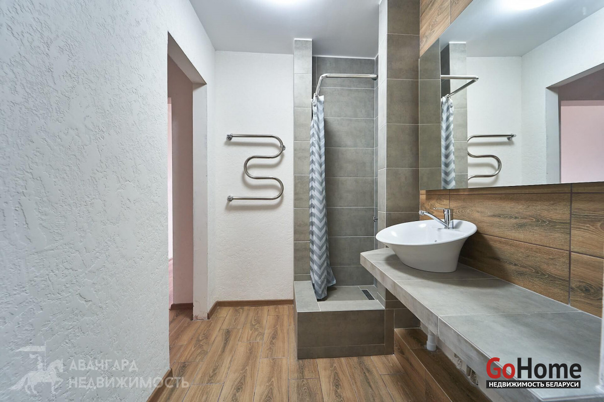 В квартире максимально сделан ремонт. Выровнены стены под окрашивание и обои. На полу уложена плитка и ламинат. Потолок выравнен и окрашен по всей квартире. В ванной комнате установлена душевая кабина, произведена замена змеевика из нержавеющей стали, большое зеркало с подсветкой. В коридоре есть место для встроенного шкафа для хранение личных вещей. Также у нас оборудована гардеробная, что не может не радовать. Двухкамерные окна ПВХ. Новая входная металлическая дверь (хорошего качества). По проекту дома у вас своя газовая колонка, что позволит вам пользоваться всегда горячей водой. Чистый подъезд, без дополнительных запахов. Доброжелательные соседи.
