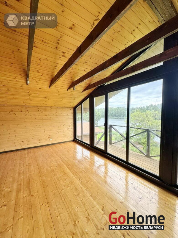 Продается загородный дом, который находится в самом центре Нарочанских просторов Беларуси. Мядельское направление, Витебская область, Поставский район, деревня Параски. 23 км от Нарочи, 145 километров от Минска. Коттедж идеально сочетает в себе близость к цивилизации и уединение в тихом загородном живописном уголке. До Мяделя - пятнадцать минут на машине. Дорога полностью асфальтированная, гравийная дорога только непосредственно к деревне - примерно полтора километра (постоянно чистится зимой и ровняется грейдером летом). Сама деревня уникальна тем, что в ней нет обычных деревенских домов - все дома - современные коттеджи с выходом к озеру. Дом расположен прямо на Центральной улице деревни Параски с собственным выходом к озеру Должа.Высокое качество строительства и материалов. Уникальное сочетание дерева и стекла, дом как будто бы "воздушный"! Дом из профилированного бруса, два уровня, та часть дома, которая обращена к озеру полностью остеклена, находясь внутри дома ощущается полное единение с природой ! Внутренняя отделка - дерево и плитка - теплые полы. Необыкновенный запах дерева и воды от озера - более экологически чистого места трудно найти. Отопление - электричество и камин, канализация местная. В доме два санузла, терраса, балкон, вода -скважина. Площадь участка 11,3 соток. Есть возможность увеличить участок в рамках "земельной амнистии". Участок огорожен деревянным забором, от улицы - ровная площадка, ближе к озеру - с уклоном, сделана терраса с подпорной стенкой. Пирс можно увеличивать и оборудовать "купальню", настоящий рай для любителей рыбной ловли "не выходя из дома", рыба плещется прямо перед глазами. Удаленность от магистралей и трасс обеспечивает высокий уровень экологичности этого места. Территория леса - природный заказник. Это гарантирует максимально тихое и комфортное проживание и отдых вдали от городской суеты.Заинтересованным покупателм торг при осмотре.