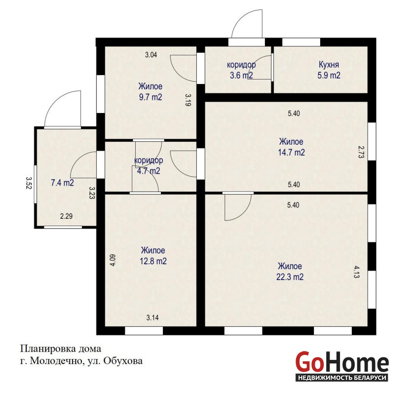 - Площадь: Общая площадь дома составляет 73,7 м2, жилая площадь — 59,5 м2, кухня — 5,9 м2. Просторная веранда.