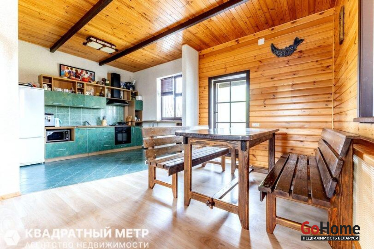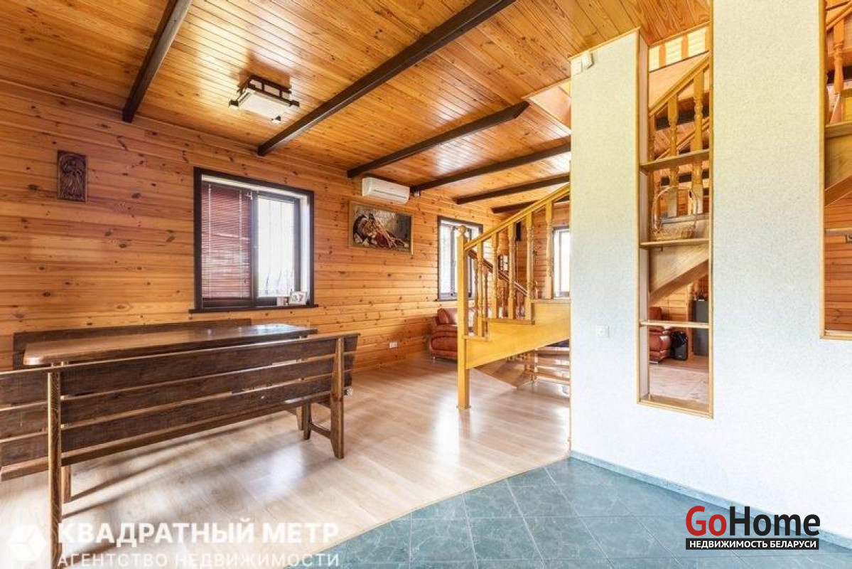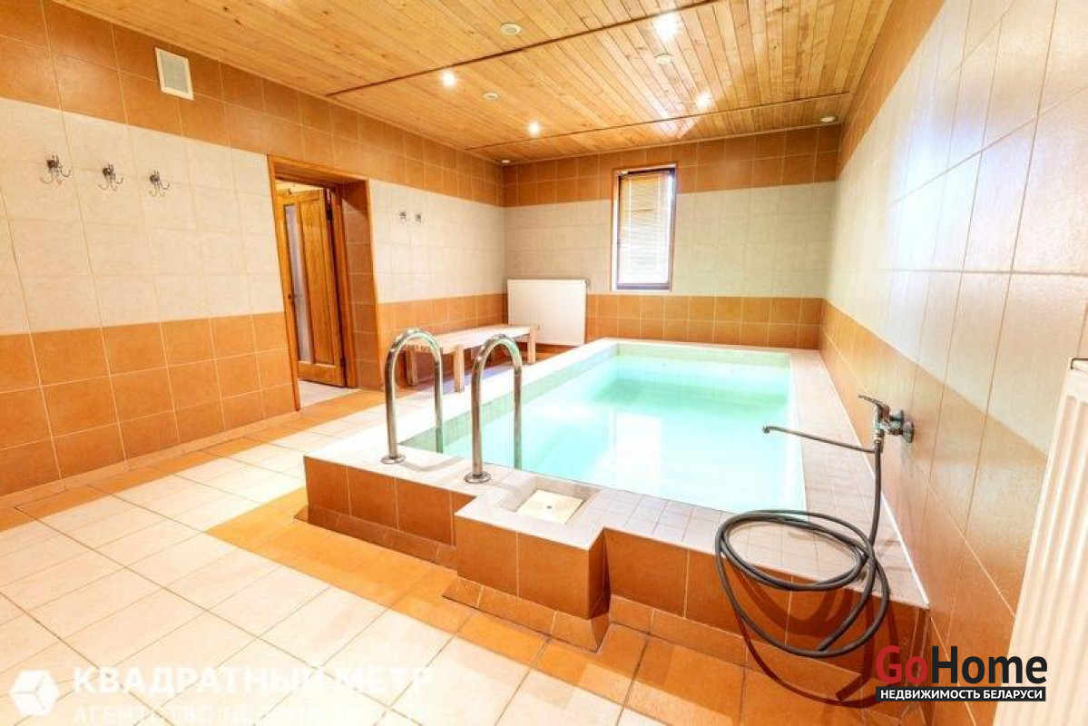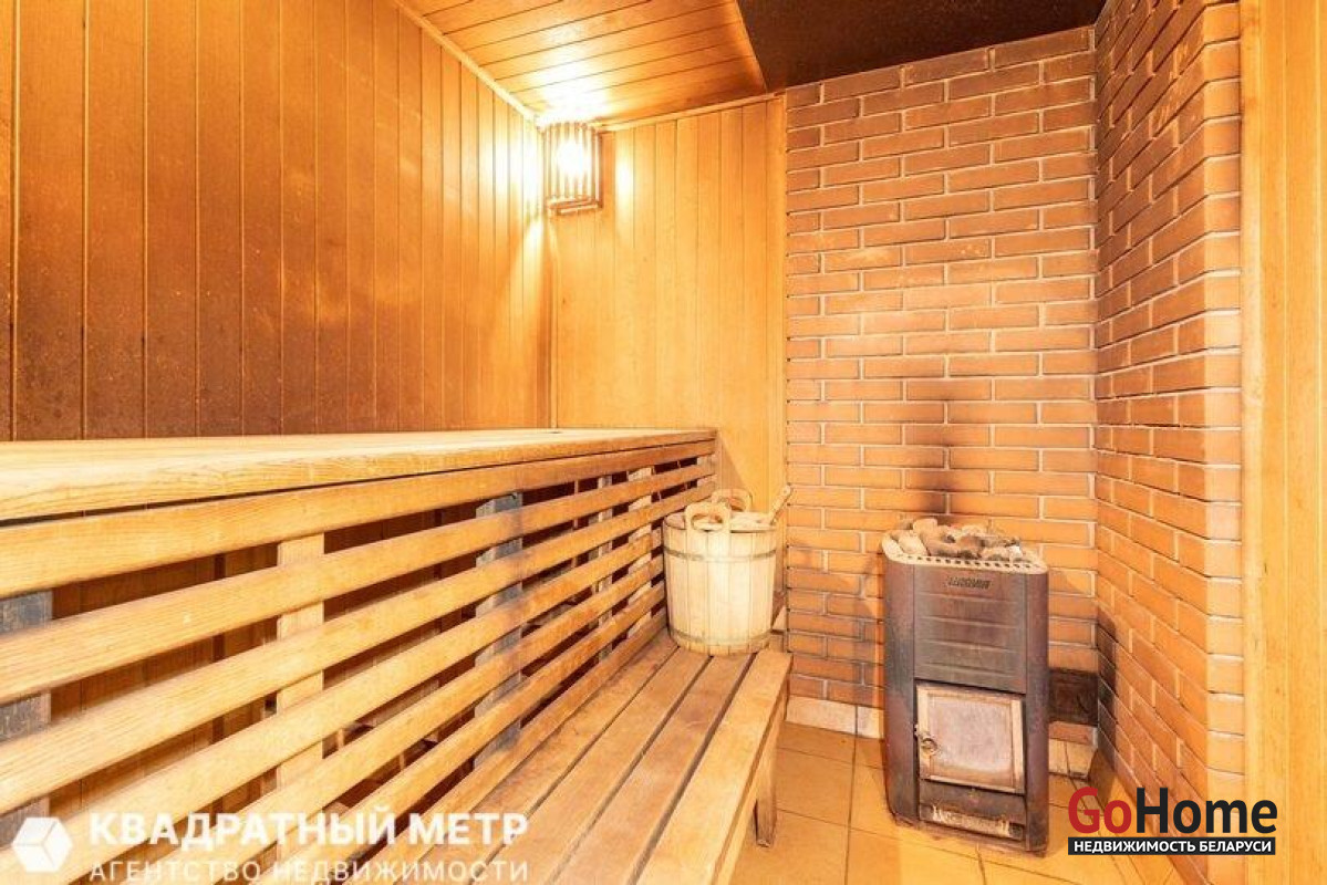 Уникальное предложение. Продается коттедж в пригороде, в 20 км от г. Минска, в 2 км от Заславля, в современной коттеджной застройке, экологически чистом районе, в окружении лесных массивов и нескольких водохранилищ «Дички» (500м), «Крылово», «Заславское». Богатые леса, много грибов и ягод, в водоемах отличные рыбалка и места для купания и отдыха. Участок 17,5 соток, в частной собственности, прямоугольный и ровный. Въезд на территорию оборудован автоматическими воротами. Коттедж двухуровневый, общей площадью 226,4 м2, продается с мебелью и бытовой техникой. Два входа в дом. Гараж – навес 26 м2. На территории имеется сарай с пристроенной беседкой и барбекю. Комфортная для жизни и отдыха планировка помещений. На первом этаже: удобная прихожая 24 м2. Большая гостиная - столовая 53.3 м2, (полы в зоне плитки с подогревом), с камином, большими окнами, выходом на террасу с видом на сад, кондиционер. Комната 31.4 м2 различного назначения как для взрослых, так и для детей. Для отдыха и релакса СПА комплекс с бассейном и парилкой, (в зонах плитки полы с подогревом). Так же имеется санузел, техническое помещение (постирочная) и котельная. Высота потолков 3.4 м. На втором этаже: 3 спальни, санузел, и 2 гардероба (21 м2 и 2.3 м2). Высота потолков 2,3 м. Оптоволокно (телефон, интернет), ТВ сети. Все коммуникации: электричество, вода собственная скважина, центральный газопровод, местная канализация. Инфраструктура на доступном расстоянии: магазины, школа и детский сад, почта, банк, медучреждения, аптеки, рынок. До Минска транспортное сообщение с ост. «Шубники» - городской автобус №358 до ст. Карастояновой; до Заславля 1,5- 2 км, каждые 15 минут ходят маршрутки в Минск, электрички.
