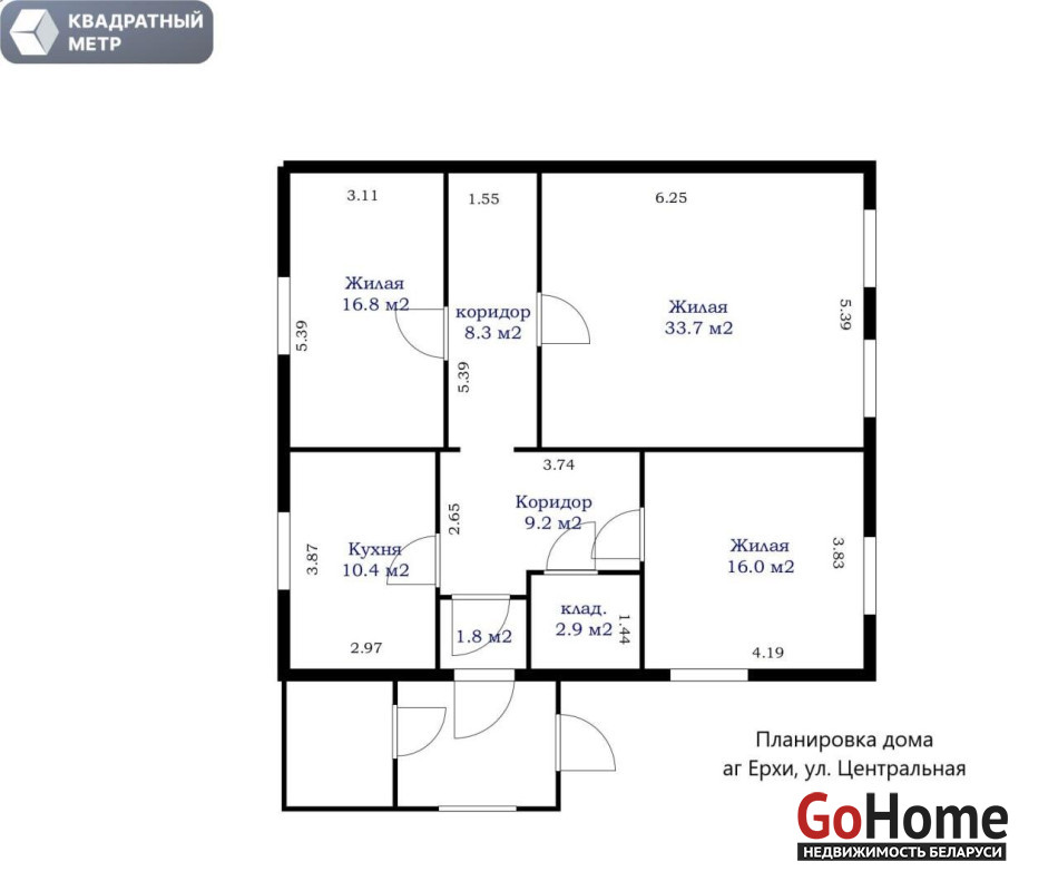 Ищете идеальное место для отдыха от городской суеты? Обратите внимание на наш дом, расположенный в экологически чистом районе, окруженном природой и свежим воздухом.Дом находится в агрогородке Ерхи Вилейского района Минской области. Общая площадь дома: 99,1 кв м, жилая – 66,5 кв м. Три изолированные комнаты: 33,7 кв м; 16,8 кв м и 16,0 кв м.