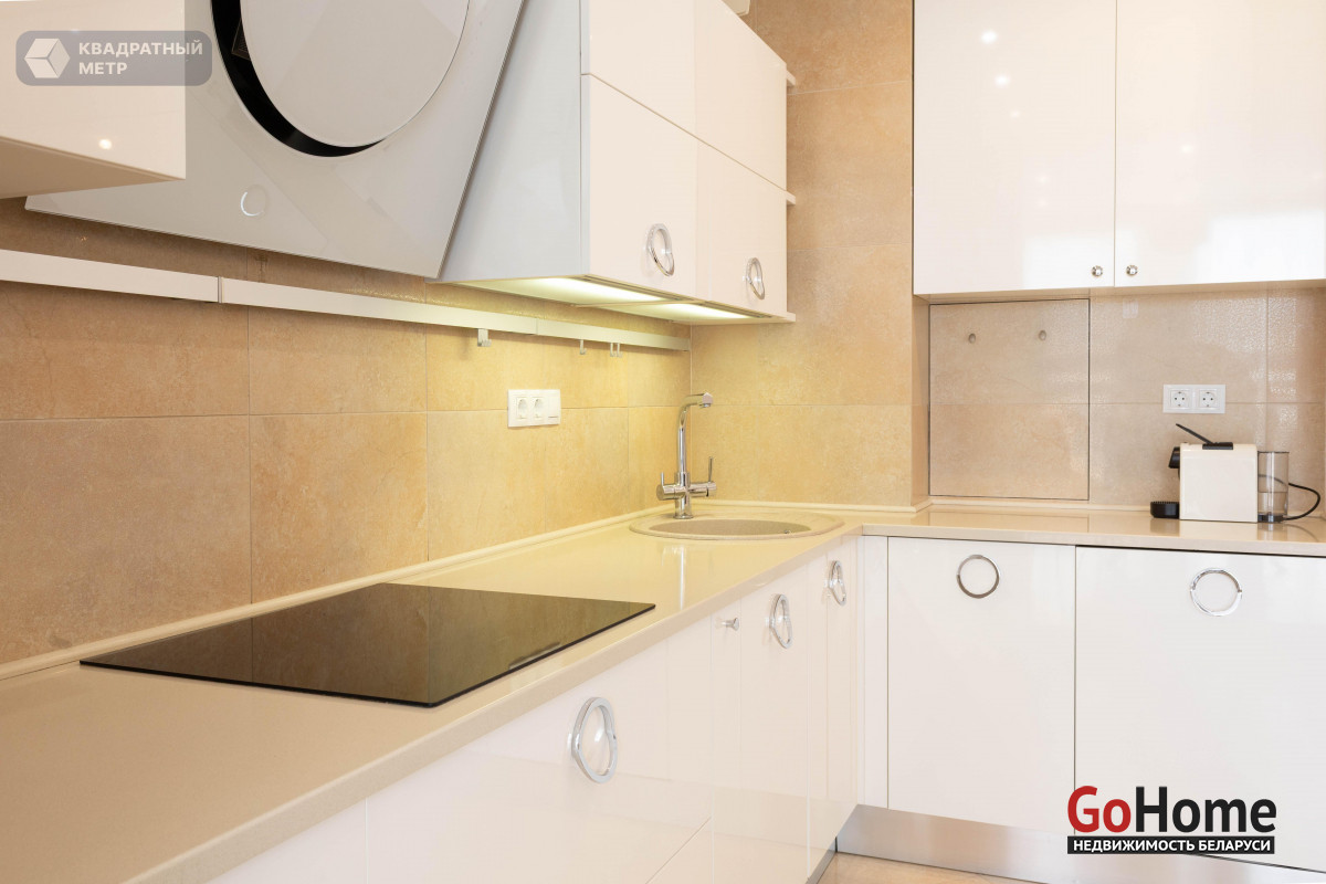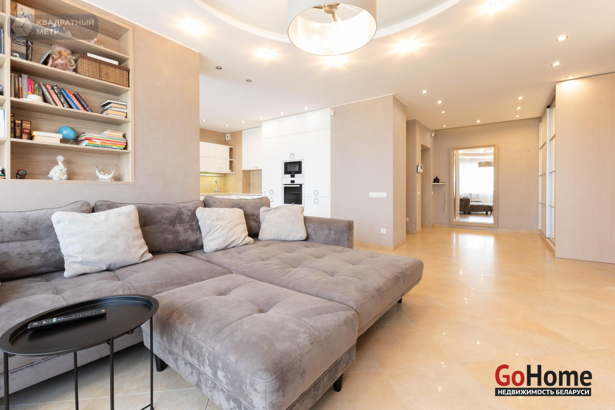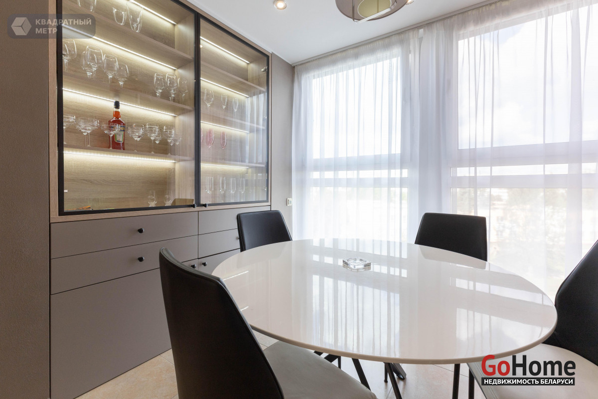 Эксклюзивное предложение на Гамарника, 16А! В квартире сделан дизайнерский ремонт с использованием качественных строительных материалов премиум класса. Стены окрашены, декоративная штукатурка `Ланкруста`, в с/у уложена испанская плитка, импортная сантехника `GROE`, теплые полы под плиткой, стиральная и сушильная машины `BOSCH`, кондиционеры, встроенная бытовая техника `BOSCH` и холодильник. В квартире предусмотрена вместительная гардеробная. Квартира готова к проживанию. Дом расположен в экологически-чистом районе Минска, в шаговой доступности парковая зона, развитая инфраструктура. Есть 2 машиноместа в подземном паркинге . Входят в стоимость.