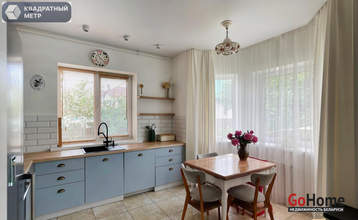 Дом очень теплый и светлый. На первом этаже располагается шикарная кухня-гостиная 35,3м2. Кухня была изготовлена под заказ. Установлена встроенная техника: -индукционная варочная панель -духовой шкаф -посудомоечная машина 60см- Bosch -холодильник.