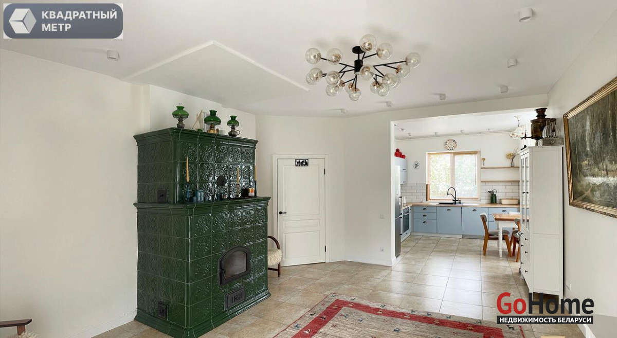 В гостиной расположена, печка изразцовая с возможностью приготовления пищи. Также с гостиной есть отдельный выход на террасу.