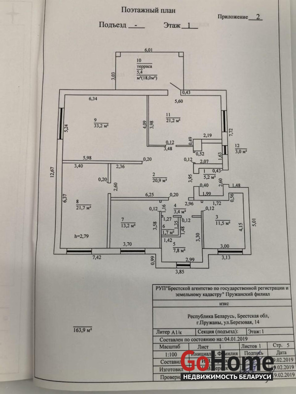 Продается одноэтажный просторный, светлый дом для большой семьи и/или бизнеса в г. Пружаны. 2014 года постройки! Общая площадь дома 163.9 кв.м..