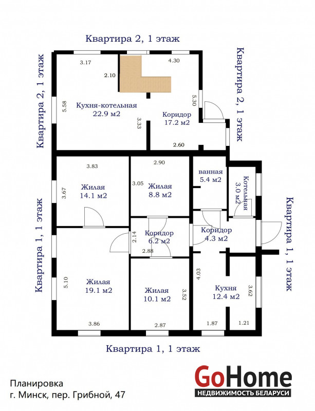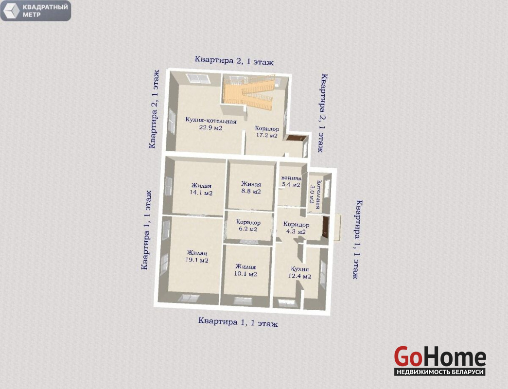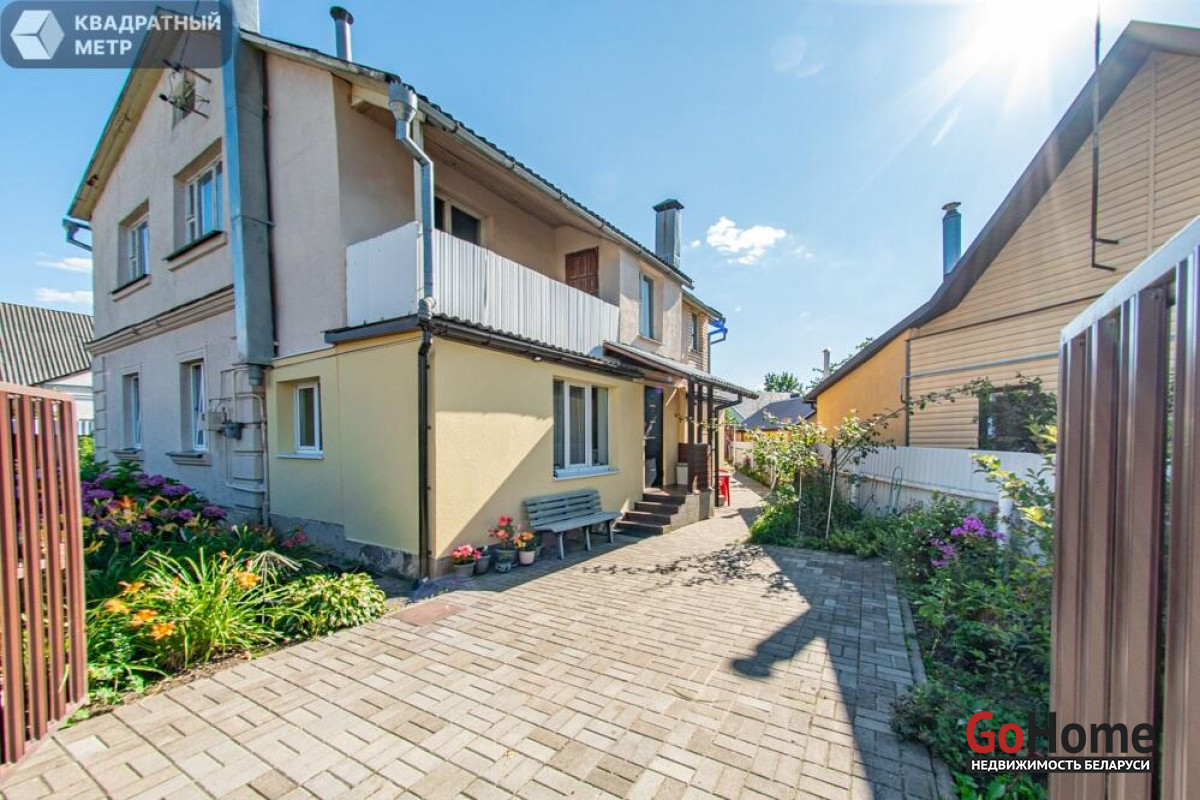 · Дом состоит из 2 квартир. Первая квартира: одноуровневая на 1 этаже, 84,7м. 3 жилых комнаты, кухня, санузел, котельная. Стеклопакеты, ламинат, плитка. 2-контурный газовый котел Bosh на подогрев воды и отопление. Кирпич оштукатурен, покрашен. Вторая квартира: двухуровневая, 163,9 м. Большая кухня, 4 жилых комнаты, санузел, балкон. Деревянные окна, деревянные полы. Газовый котел, газовый бойлер. Силикатные блоки, утепление, снаружи кирпич, оштукатурен и покрашен. Стекловолокно.