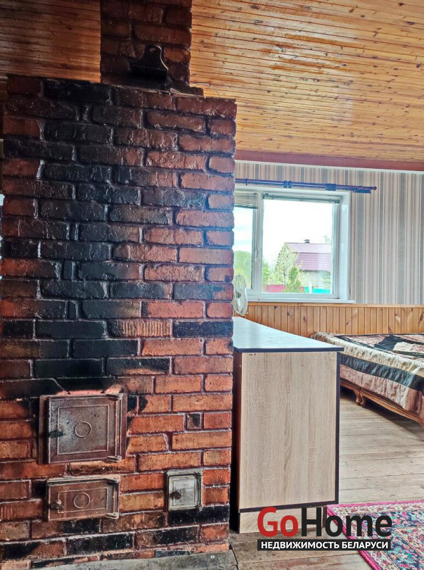Отопление печное, окна ПВХ, отделка вагонкой. В дом проведена вода (скважина) и канализация, есть бойлер и септик. Встроенная кухня и бытовая техника остается при продаже.