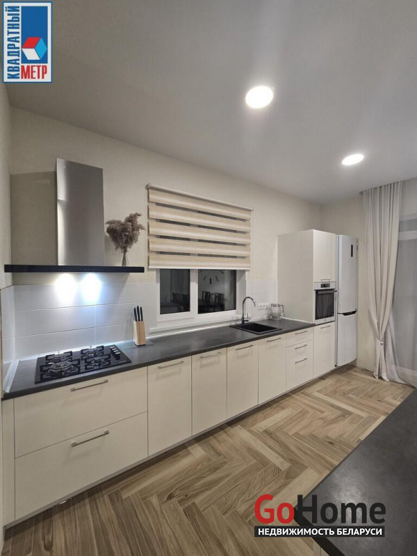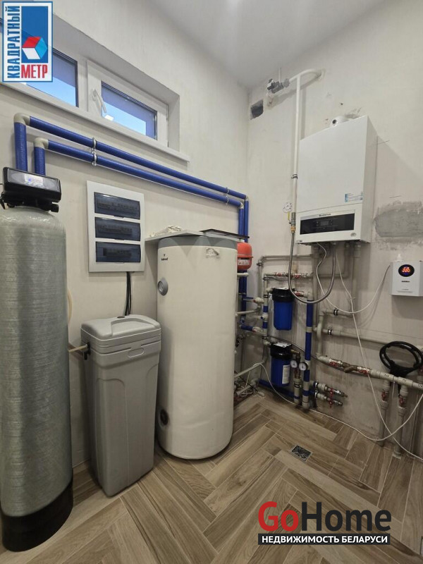 Дом газифицирован, центральное водоснабжение, электроснабжение 380 В (мощность 11,5 кВт), высокоскоростной интернет (оптоволоконный кабель, оператор Белтетелком).