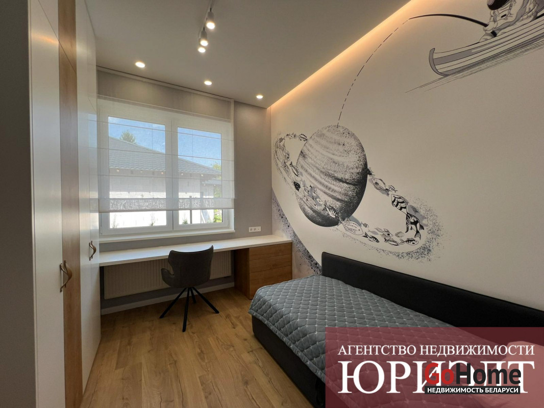 - Спальни: две детские выполнены в выдержанном стиле, хозяйская спальня площадью 19,5 кв.м.
