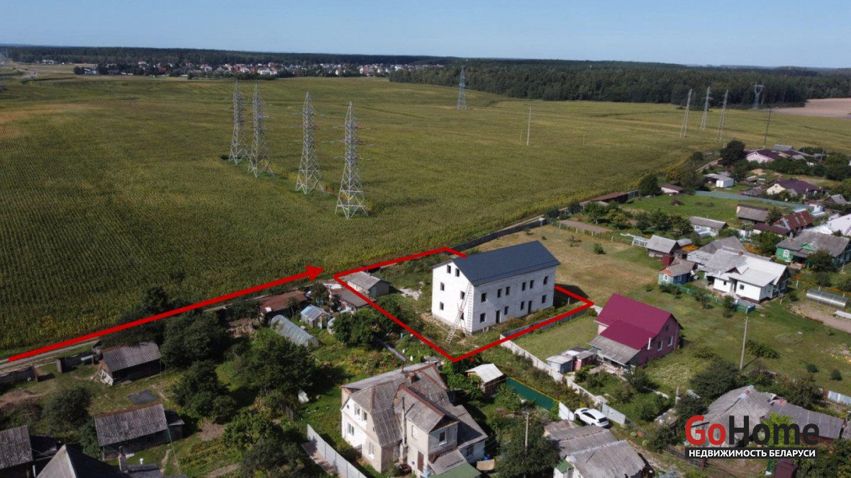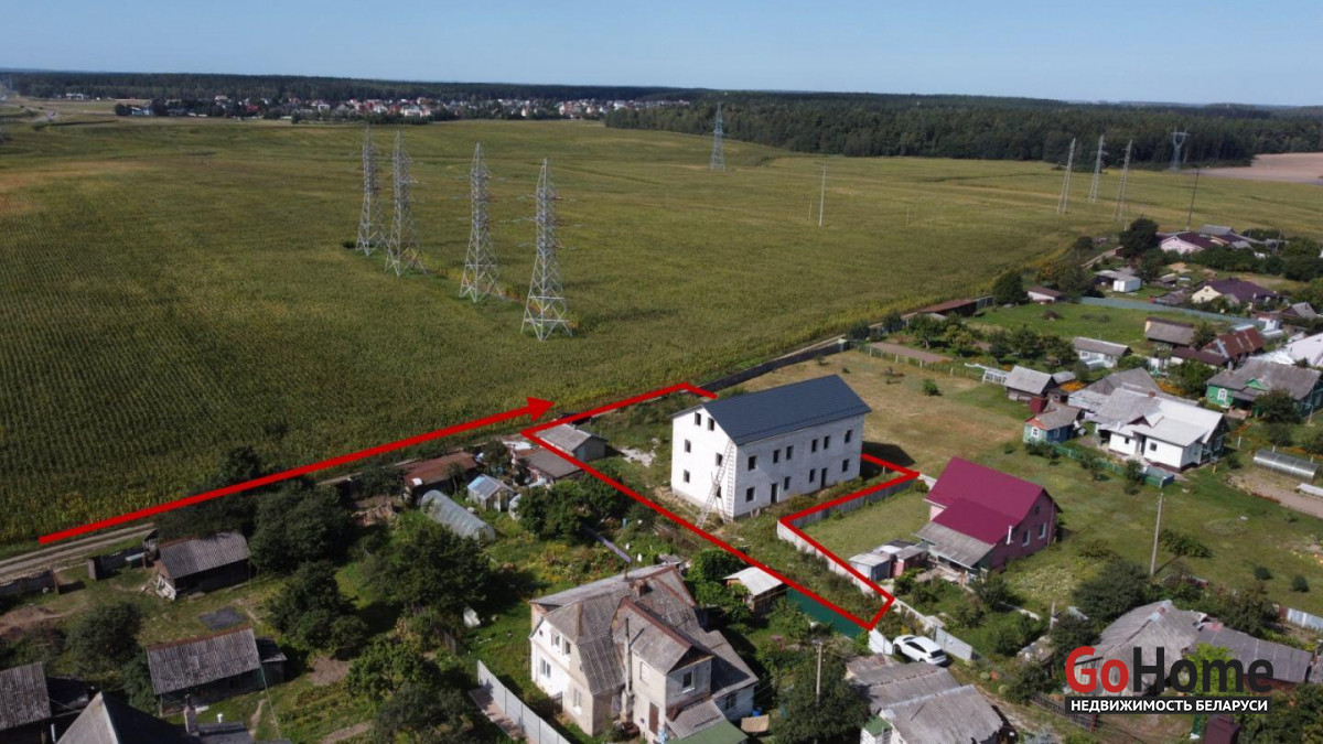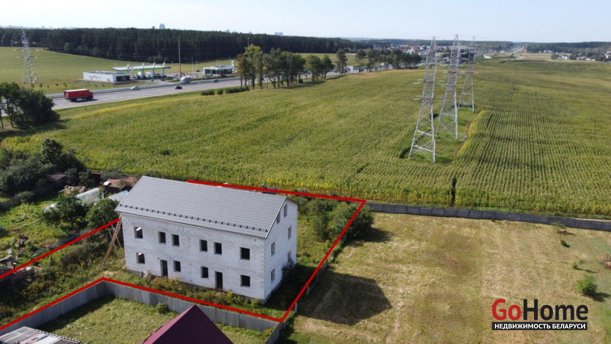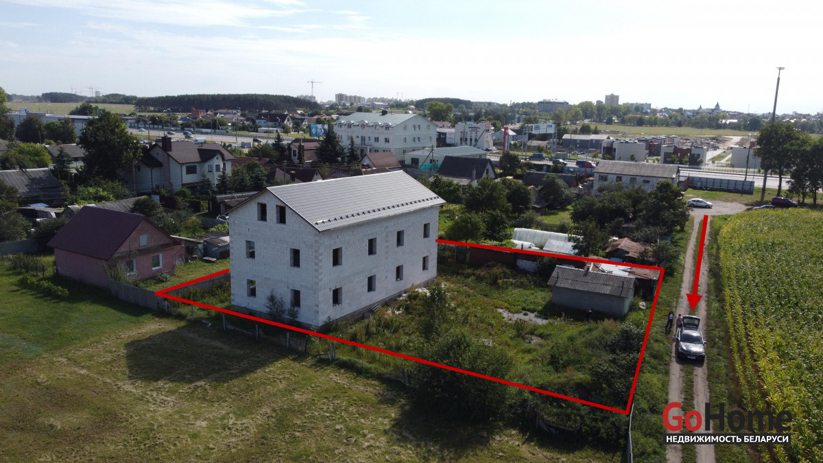 На участке незавершенное капитальное строение - жилой дом. Трехэтажный дом построен из газосиликатных блоков. Фундамент железобетонный. Крыша качественная металлочерепица. Высота потолков- 3.15м.