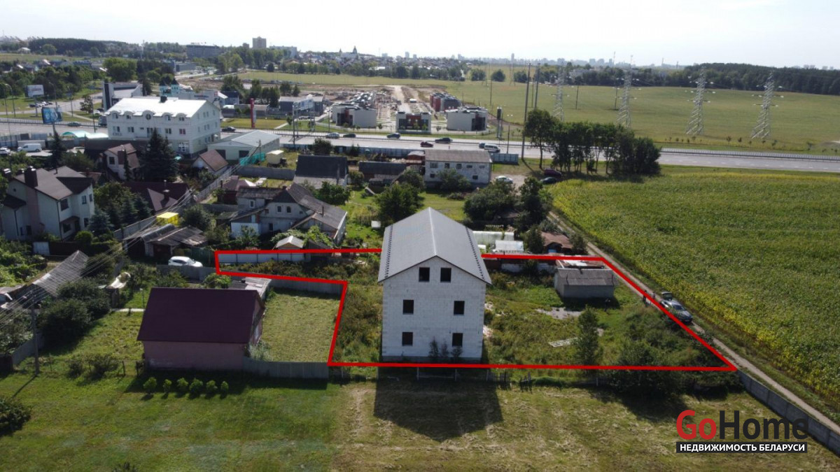 На участке незавершенное законсервированное капитальное строение - двухквартирный жилой дом, свободной планировки. Трехэтажный дом построен из газосиликатных блоков. Фундамент железобетонный. Крыша качественная металлочерепица. Высота потолков - 3.15м.
