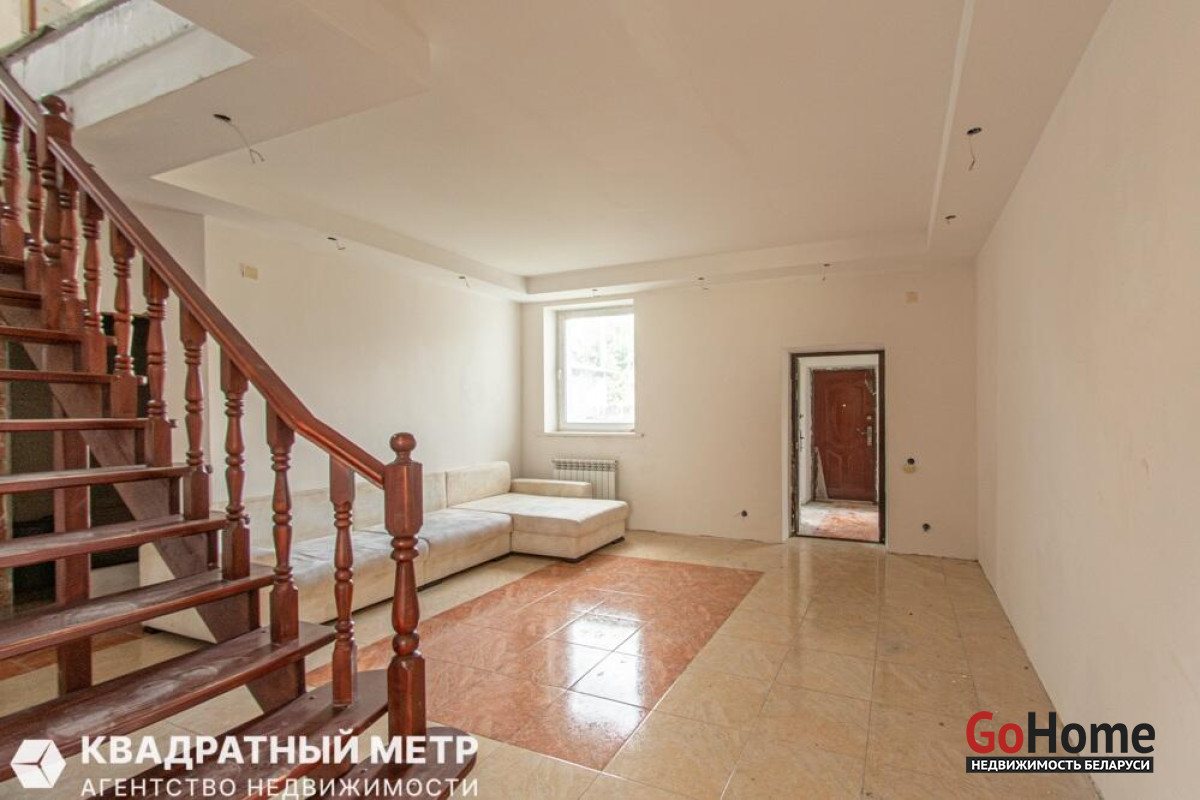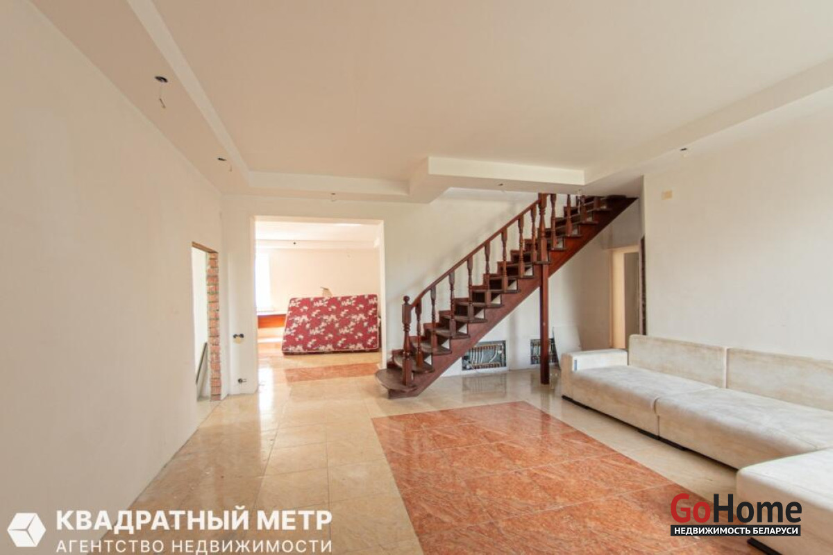 Дом находится на ул. Стефановская микрорайон Зацень. Это потрясающая возможность жить в экологически чистом районе Минска, наслаждаться тишиной природы рядом с лесным массивом. Недалеко р. Свислочь и Водохранилище Дрозды. Очень удобное транспортное сообщение и непосредственная близость с центром города. Дом трехэтажный, грамотно спроектирован, 9 комнат. На первом этаже- холл, просторная гостиная, кухня, кладовая, котельная, бассейн с сауной и душевой, выход из дома в гараж.На втором этаже- четыре изолированные комнаты и холл, на мансардном этаже- 2 жилые комнаты и комната для занятия физкультурой. На каждом этаже - санузел. Дом готов для чистовой отделки. Есть также 2-х этажный гостевой дом ( 200 кв.м) готовый для проживания. Звоните, покажем в удобное для вас время!