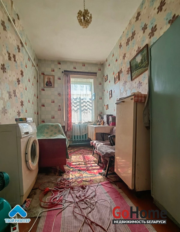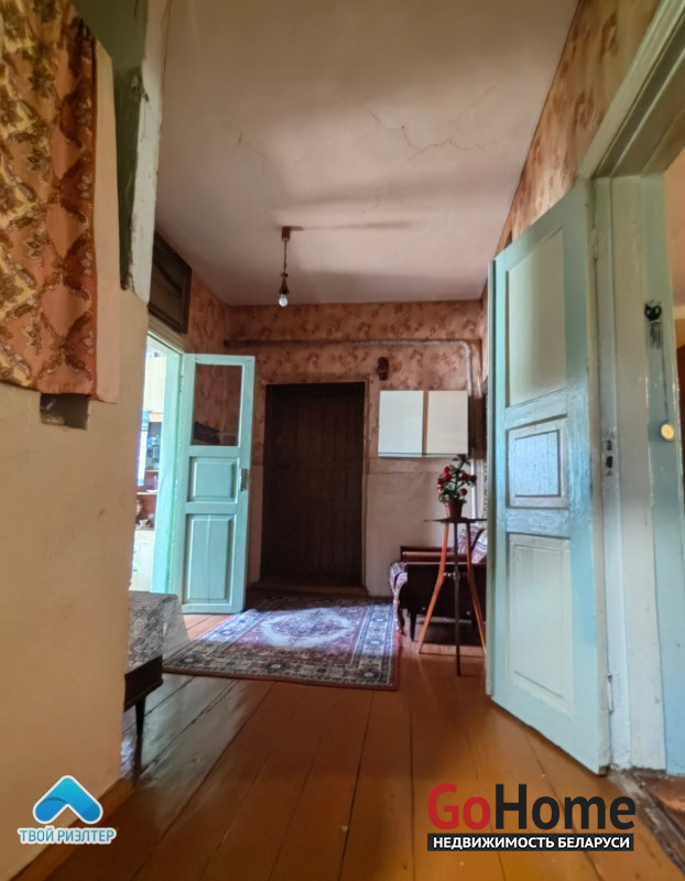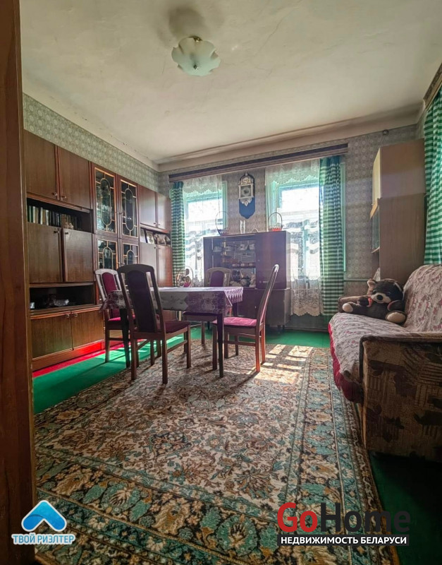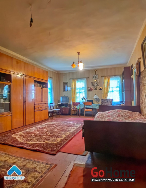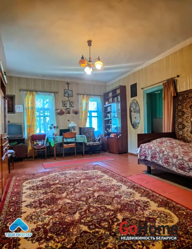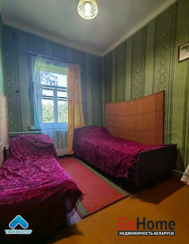 Продается жилой дом в аг. Иваки по улице Молодежная. Дом жилой, из красного кирпича, одноэтажный, 1980 года постройки, общей площадью 108,3 м2. Пять жилых комнат, одну из которых можно переоборудовать в санузел. Окна деревянные, полы дощатые, крепкие; высокие потолки - 3 м. Крыша - металл покрыт шифером. Два погреба: в доме и в сарае. Отопление газовое (одноконтурный котел), есть исправная печь. Есть скважина с чистой питьевой водой, канализация местная (4 кольца). Во дворе сараи для хоз.нужд. Новому собственнику оставим всю мебель. Земельный участок в пожизненно наследуемом владении общей площадью 22,54 сот. Рядом с домом школа-сад, продуктовые магазины, ж/д станция.