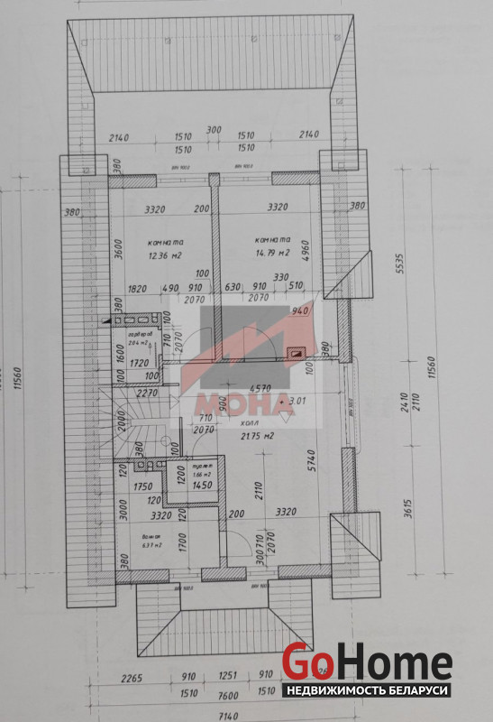 Стены дома построены из газосиликатного блока 300 мм, плиты перекрытия жб, кровля - шифер.