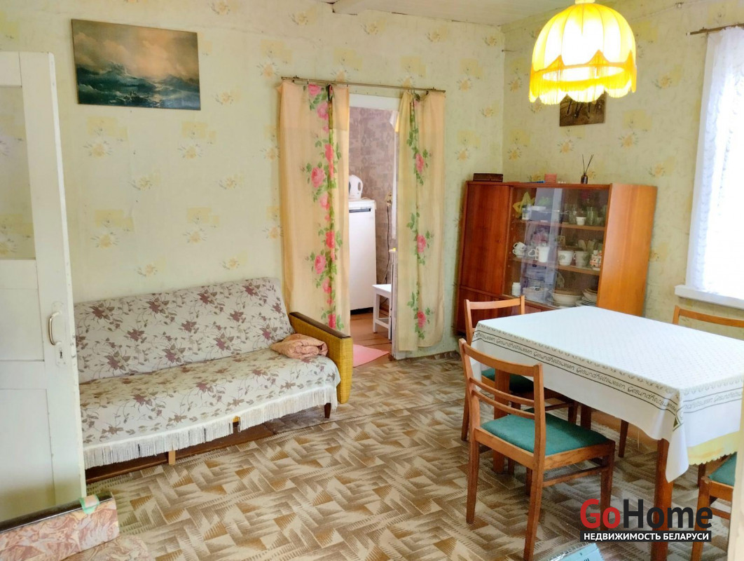 Капитальный бревннчатый просторный дом, обшит вагонкой снаружи. На высоком фундаменте.В доме 4 светлые, аккуратные комнаты и 2 входа.Высокий чердак позволяет при необходимости сделать мансардовый этаж. Крыша - шифер в хорошем состоянии.В доме проведено электричество, так же имеется ночное уличное освещение на столбе рядом с домом.Отопление печное (русская печь). Вода - колодец на участке.Участок большой и прямоугольный (25 соток ), плюс ещё около 25 соток, вместе с зелёной зоной примыкают к нему.Холмистая местность участка, окружённого живописными пейзажами (леса, поля), создают неповторимый естественный ландшафт места.На участке имеются хозпостройки (3 сарая и баня, бане требуется ремонт)Также на участке замечательный сад (яблони, вишни, груши, орехи грецкие, фундук и многое другое). Много красивых цветов, которые окружают дом.Рядом с деревней (2.4 км) расположен пос. Янушковичи, где имеется развитая инфраструктура (магазины, школа, детсад, почта и.т.д).Здесь же расположено красивое озеро, где можно отдыхать, ловить рыбу и купаться.Недалеко г Логойск (15км) и горнолыжный курорт Силичи .Отличное транспортное сообщение с Минском и Логойском, несколько раз в день маршрутки (40 мин до Минска). Остановка в 150 м от дома.Очень удобный подьезд к дому - асфальт на всем протяжении дороги.Покупайте капитальный дом в живописном месте, где неповторимая красота природы соседствует с развитой инфраструктурой.Возможен торг.