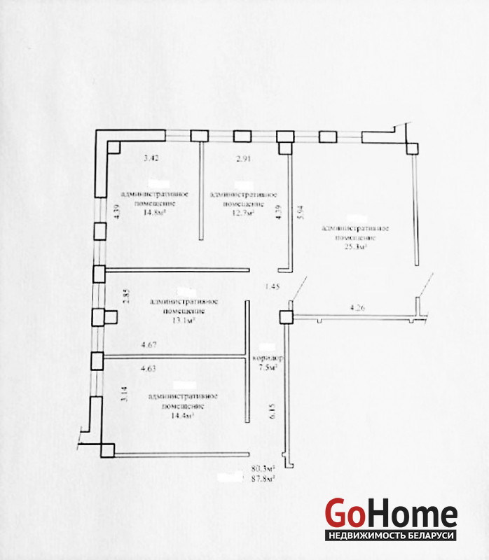 Возможность аренды и всех помещений на этаже - 88 кв.м.