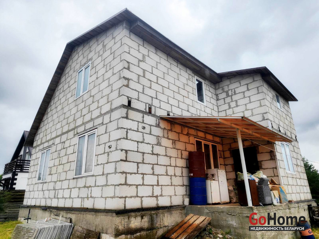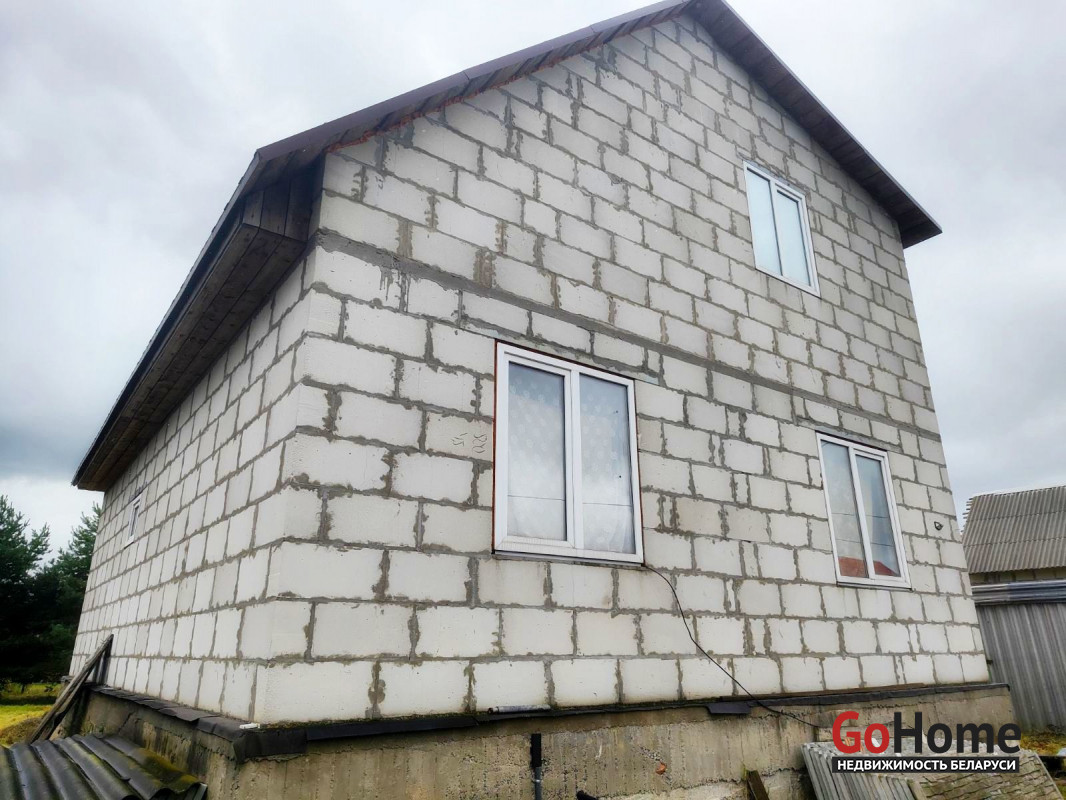 Дом площадью 189,6 м2 с мансардным этажом и большим подвалом выполнен из газосиликатных блоков с двускатной крышей, кровля мягкая черепица.