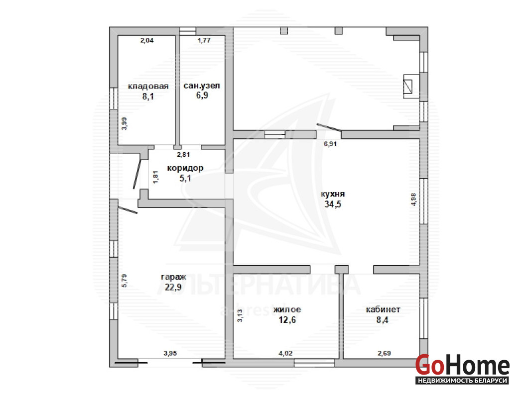 Жилой дом в Брестском р-не. 2016 г.п. 1 этаж. Общ.СНБ - 105,3 кв.м, общ.- 75,6 кв.м, жил.- 21,0 кв.м, кух.- 34,5 кв.м. 2 комнаты, высота потолка - 2,54 м.