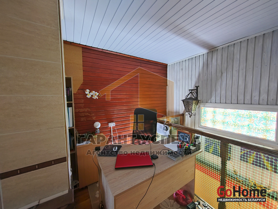 Все помещения дома находятся в жилом состоянии: пол – керамическая плитка, ламинат, доска, стены оклеены обоями, потолок на первом этаже украшают деревянные балки, а натяжной потолок мансардной комнаты перекликается с белоснежным сайдингом.