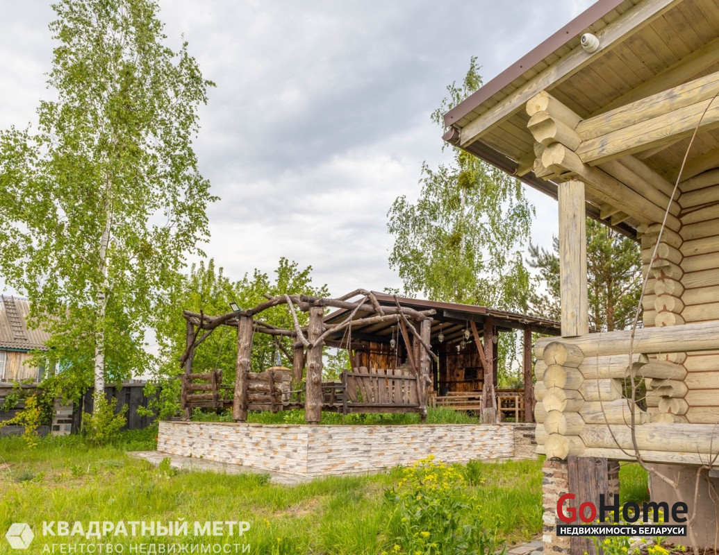 • Просторная беседка с зоной барбекю и качелями