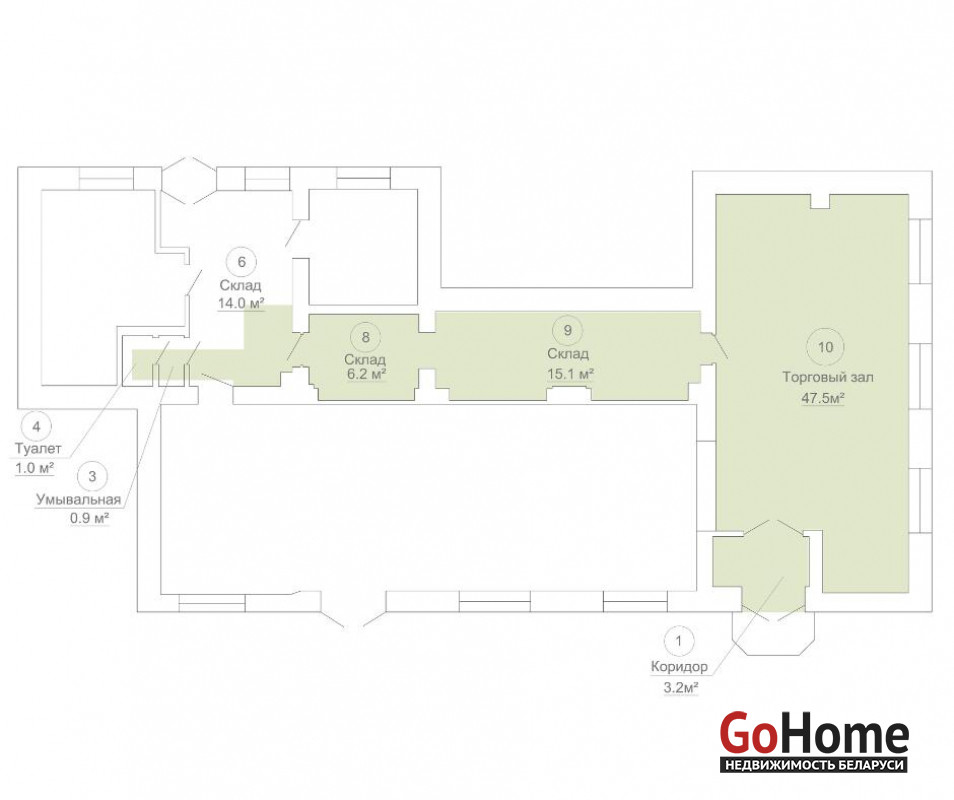 Внутри помещений выполнен лаконичный ремонт в светлых тонах: плитка ГРЭС, потолки Armstrong, стены оштукатурены и окрашены. Витринные большие окна, торговый зал правильной формы с большим количество естественного света, оборудован санузел и складское помещение, проведены все необходимые коммуникации.