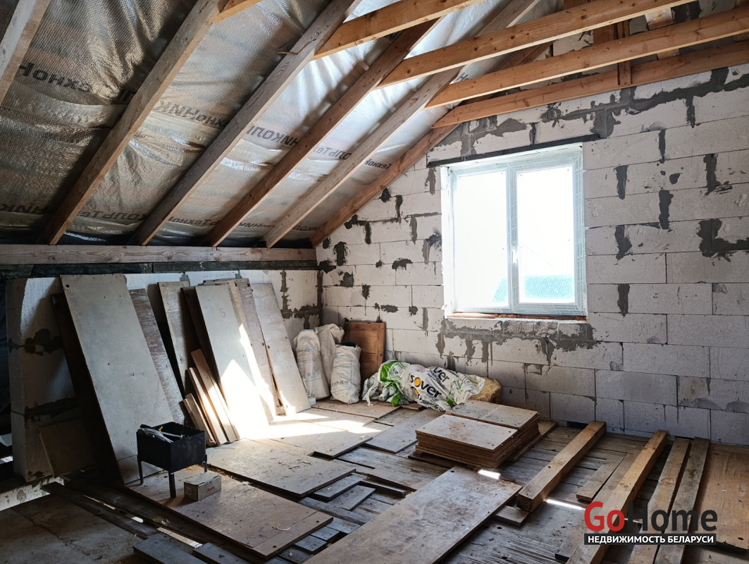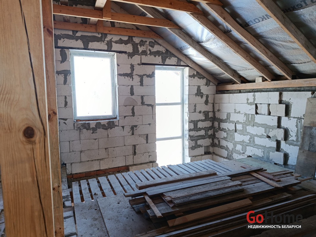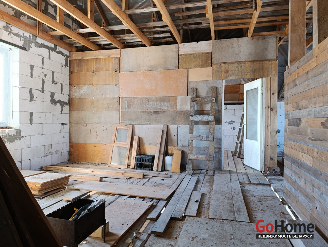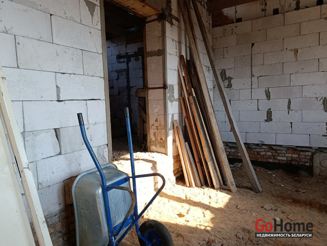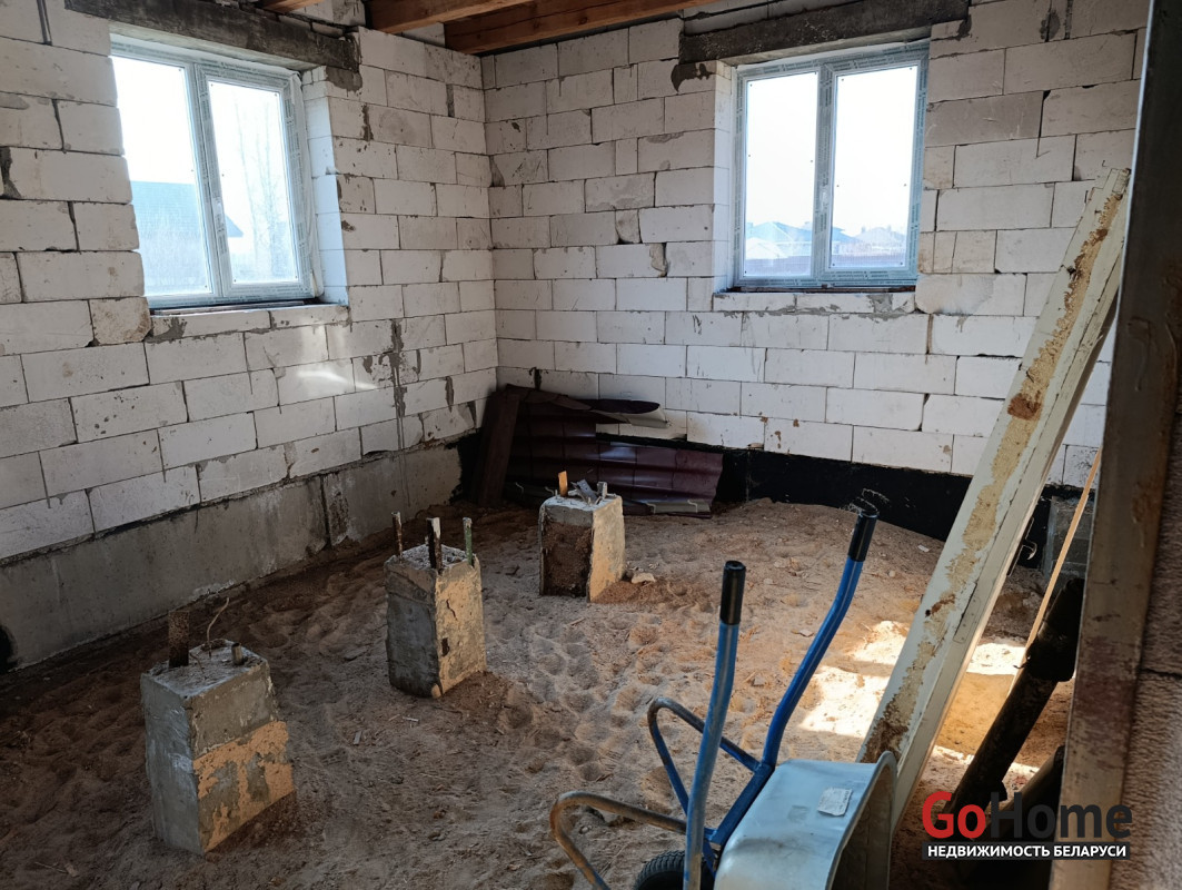 Готовность 50-60%. Дом из блоков г/с. толщиной 500мм. Фундамент - сваи, монолитный пояс 1м, ФБС. Окна немецкие саламандр с толщиной профиля 76 мм. Кровля металлочерепица Монтерей. В дом заведён водопровод круглогодичный, электричество, оптоволокно. Ст огорожено с видеонаблюдением и шлагбаумом.