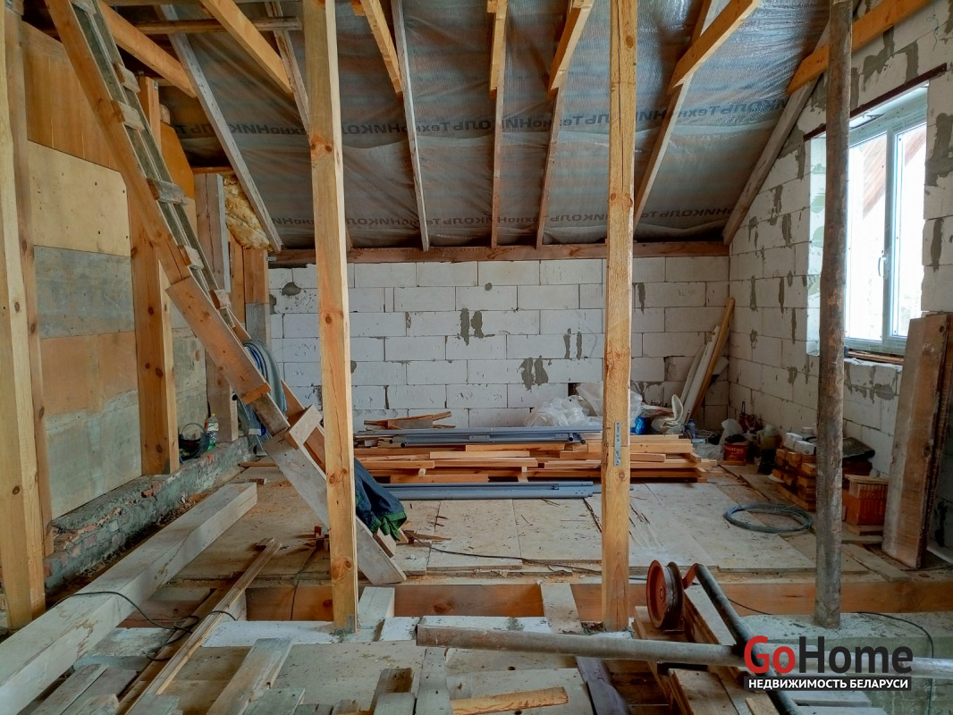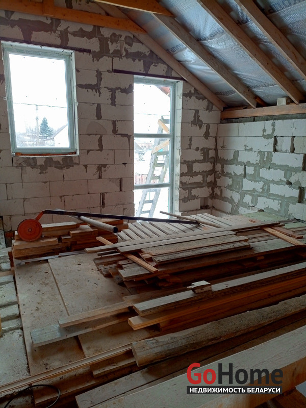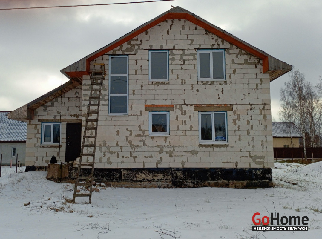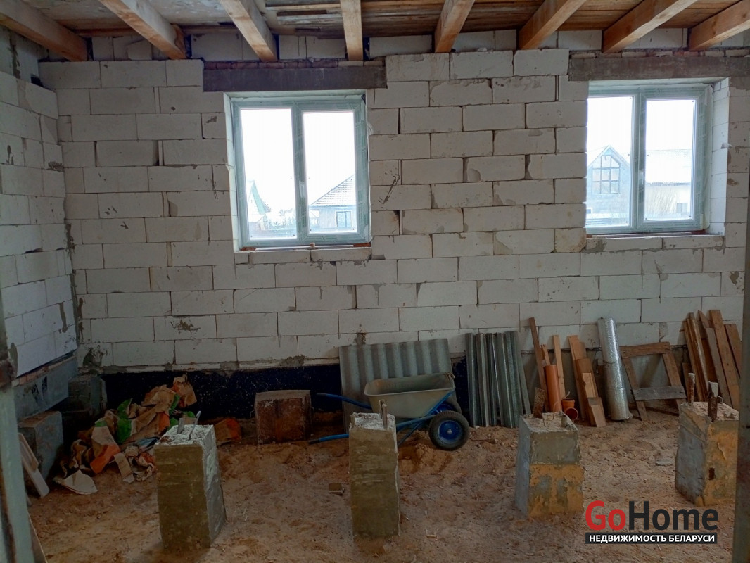 Готовность 50-60%. Дом из блоков г/с. толщиной 500мм. Окна немецкие саламандр с толщиной профиля 76 мм. Кровля металлочерепица Монтерей. В дом заведён водопровод круглогодичный, электричество, оптоволокно. Ст огорожено с видеонаблюдением и шлагбаумом.