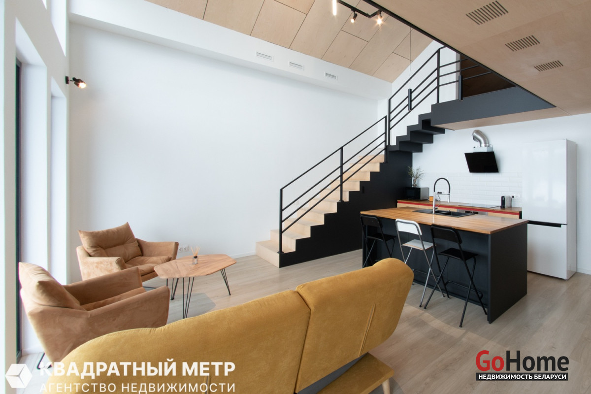 - Гостиную 40,8м2 с высотой потолков до 3,8м